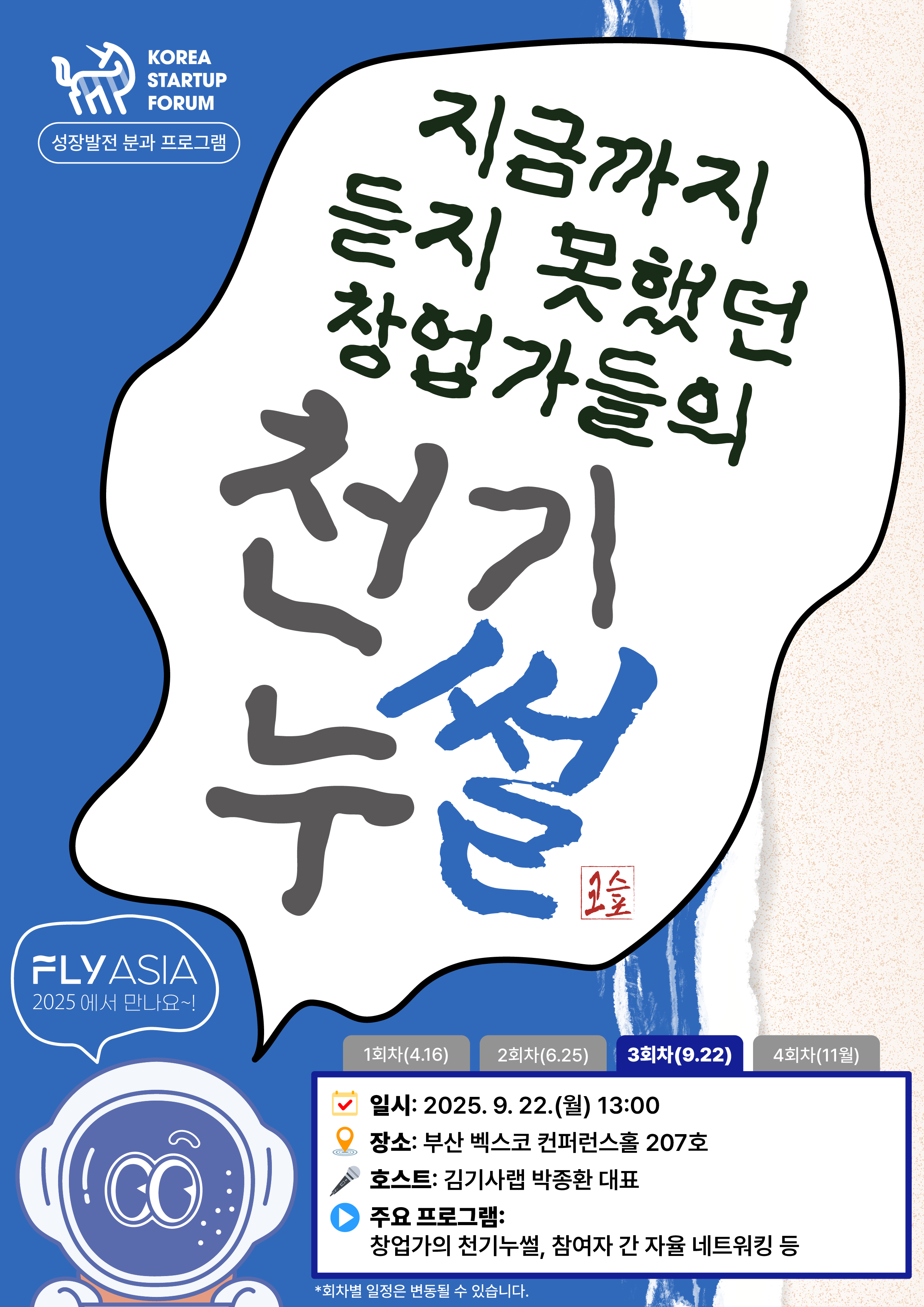 부산에서 열리는 FLY ASIA 2025 현장에서 열리는 특별한 자리, 어디서도 듣기 힘든 김기사랩 박종환 대표님의 생생한 이야기가 펼쳐집니다.💬