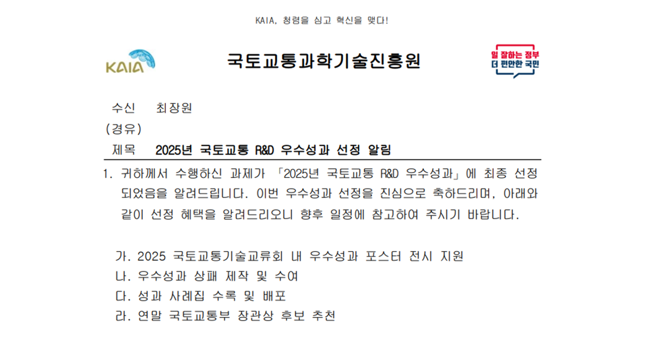 - 2025년 국토교통 R&D 우수성과 선정 -