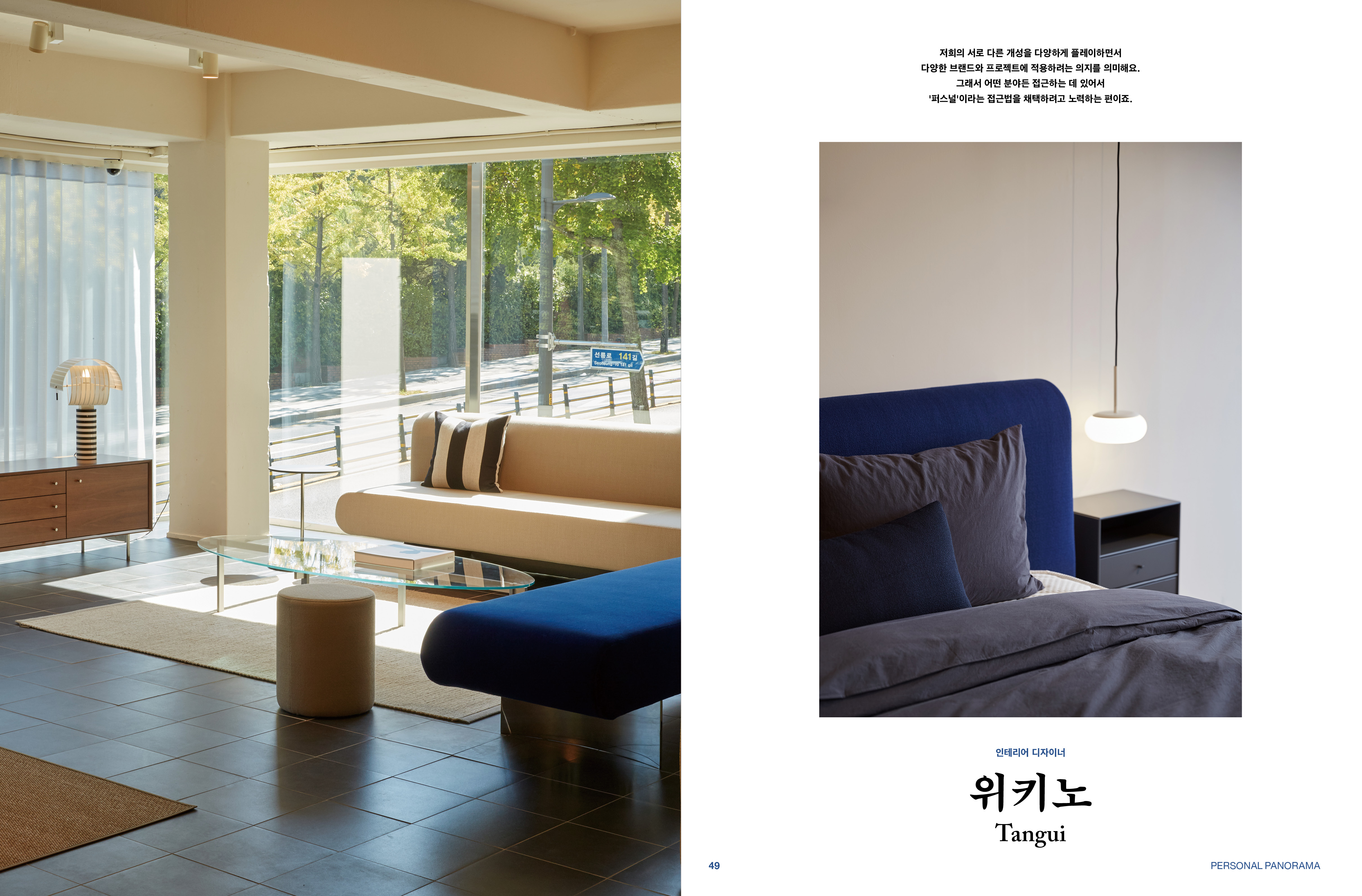 다양한 시도와 저마다의 개성이 정제된 공간 속을 풍요롭게 채울 때 공간은 사람을 닮아가고, 사람은 공간 속에 시간을 쌓아갑니다. 그 시간의 총합을 우리는 "삶"이라고 부릅니다. 삶 속에서 선택하는 취향과 가치관까지 포함해 라이프스타일이라고 일컫는데, 위키노는 가구를 중심으로 여백과 컬러 등 삶을 구성하는 요소들을 제안한다고 하네요.
