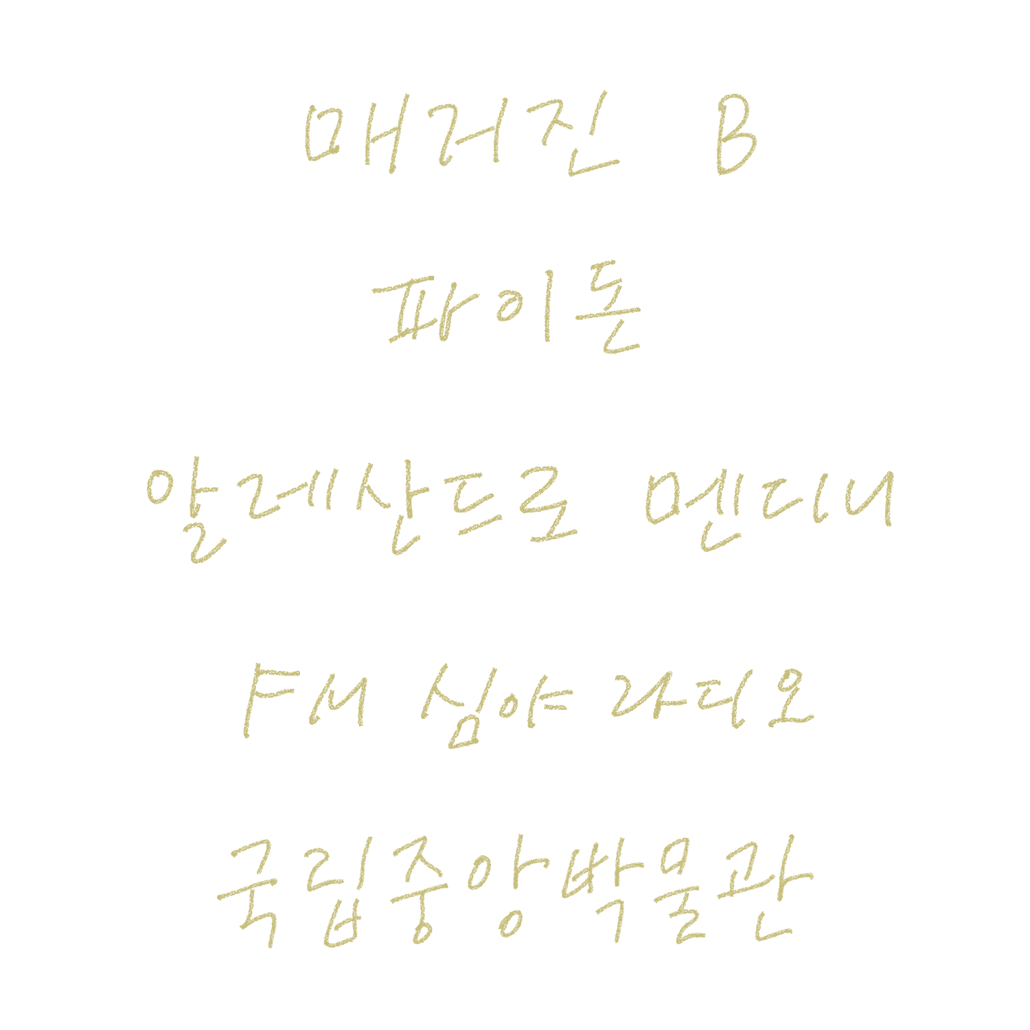 "여러분은 현재 삶에서 좋아하는 일을 곁에 두고 있나요?" 그 일을 하고 있지 않더라도 좋아하는 것을 한두 가지씩 곁에 두고 있는지 묻고 싶었어요. 그게 무엇이 되었든 힘들 때 한 번씩 들춰볼 수 있다면, 그것이야말로 살아가는 원동력이 되거든요. 미소 지을 수 있는 무언가를 꼭 곁에 두며 살아가시길 바랍니다.