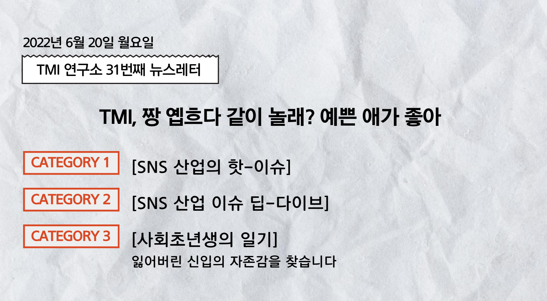 이번 주 TMI 뉴스레터, 어떻게 보셨나요?