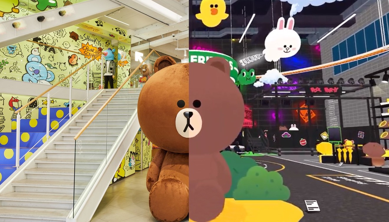 오프라인 스토어와 메타버스 플랫폼 ‘플레이투게더’의 버추얼 스토어 속 브라운 앤 프렌즈. 사진 IPX