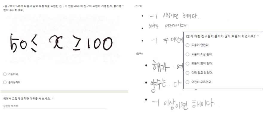 [2단계] 학생들은 본인의 생각을 적은 답안을 교사에게 제출하기, 교사는 학생 답안을 선정 및 계열 짓기 학생들의 답안을 전체적으로 확인하면서, 피드백이 필요한 학생에게는 개별적인 피드백을 제공합니다. 또한, 같이 생각해볼 몇 개의 답안을 선정하고 수학적 사고를 수정 및 보완해갈 수 있도록 순서대로 배치합니다. 이것을 계열 짓기라 합니다. [3단계] 친구들의 풀이와 자신의 풀이를 비교해보고 수정하기 교사가 피드백 영상을 주기 전에 학생들에게 먼저 같이 생각해 볼 친구들의 풀이를 공유해주고, 친구들의 생각에 동의하는지, 어떻게 수정하면 좋을지, 자신의 풀이와 비교해볼 기회를 제공합니다. 학생의 수학 개념의 이해를 돕기 위해 중요한 것은 교사의 명확한 설명은 최대한 뒤로 미루어 학생이 주어진 수학 주제에 대해 생각하고 수정할 시간을 주는 것입니다. [4단계] 학생 답안에 대한 형성적인 피드백 영상 제공 및 학생 생각을 수업 자료로 활용하기 학생 답안에 대한 계열 짓기를 완료한 교사의 수업 의도에 따라 학생들의 수학적 아이디어를 소재로 하여 피드백 영상을 제작합니다. NCTM(2020)은 교사의 수학적 사고가 강조된 수업이 아닌 학생의 사고가 수업에서 다루어져야 함을 강조합니다. <수학의 발견> 세미나팀에서 학생들의 수학적 아이디어를 담은 답안으로 피드백 영상을 만들어 수업 자료로 사용한 것은 그러한 강조점에 대한 한 가지 실천 사례가 될 수 있습니다. [5단계] 수학학습원리 점검하기 수학학습원리는 학생들이 새로운 과제를 만났을 때 이미 알고 있는 수학 지식과 사고력을 이용하여 스스로 해결방법을 찾도록 돕는 도구입니다. 온라인 수업에서도 교사는 항상 학생들이 항상 자신의 학습을 되돌아보고 앞으로 어떻게 학습하면 좋을지 반성할 기회를 주었습니다. ∎ COVID-19 이후, 불확실한 시대 속에서 수학 교사들의 공동체 문화 형성과 충분한 연구 시간을 확보할 수 있는 현실적인 방안을 적극적으로 강구해해야 함. 지금처럼 다양한 상황 속에서 수학 수업을 강행해야 하는 수학 교사들의 피로도와 업무 부담이 증가하고 있습니다. 불확실한 시대 속에서 수학 교사들은 수업과 평가에 대한 책임을 준비하고 감당하게 해서는 안 됩니다. 무엇보다 지금은 동료 수학 교사와 협력하여 좋은 수학 수업을 위해 과제를 개발하고, 수업과 평가를 설계하고 실천하며, 성찰을 통해 앞으로 나아가는 것이 중요합니다. 그러나 지금 학교 현장은 어떻습니까? 수학 교사들이 수학 수업에 대해 협력할 시간과 에너지를 충분히 제공해주고 있습니까? 국가는 수학 교사들이 공동체 문화 형성과 충분한 수업 연구 시간을 확보할 수 있는 현실적인 방안을 적극적으로 강구해야 할 것입니다. 우리의 요구 1. 교육부는 코로나 사태가 계속되는 상황에서 점수를 매기는 정량적인 평가를 보류하고 정성적인 평가로 보완하는 구체적인 방안을 책임 있게 마련하여 각 학교에 제시하기 바랍니다. 2. 교육부는 온라인 수학 수업의 효율적인 모델을 개발하여 즉시 전국에 보급하기 바랍니다. 3. 교육부는 온라인 수업으로 평상시보다 훨씬 느린 수업 진도에 걸맞은 핵심교육과정을 추출하여 기준을 현장에 제시하기 바랍니다. 4. 각 시도교육청은 교사들을 방역으로만 내몰지 말고 전문적 학습공동체 활동을 운영할 수 있는 충분한 여건을 마련하기 바랍니다. 2020. 7. 8. (사)사교육걱정없는세상 (공동대표 정지현, 홍민정) ※문의 : 사교육걱정없는세상 수학교육혁신센터 센터장 최수일(02-797-4044/내선번호 508) |