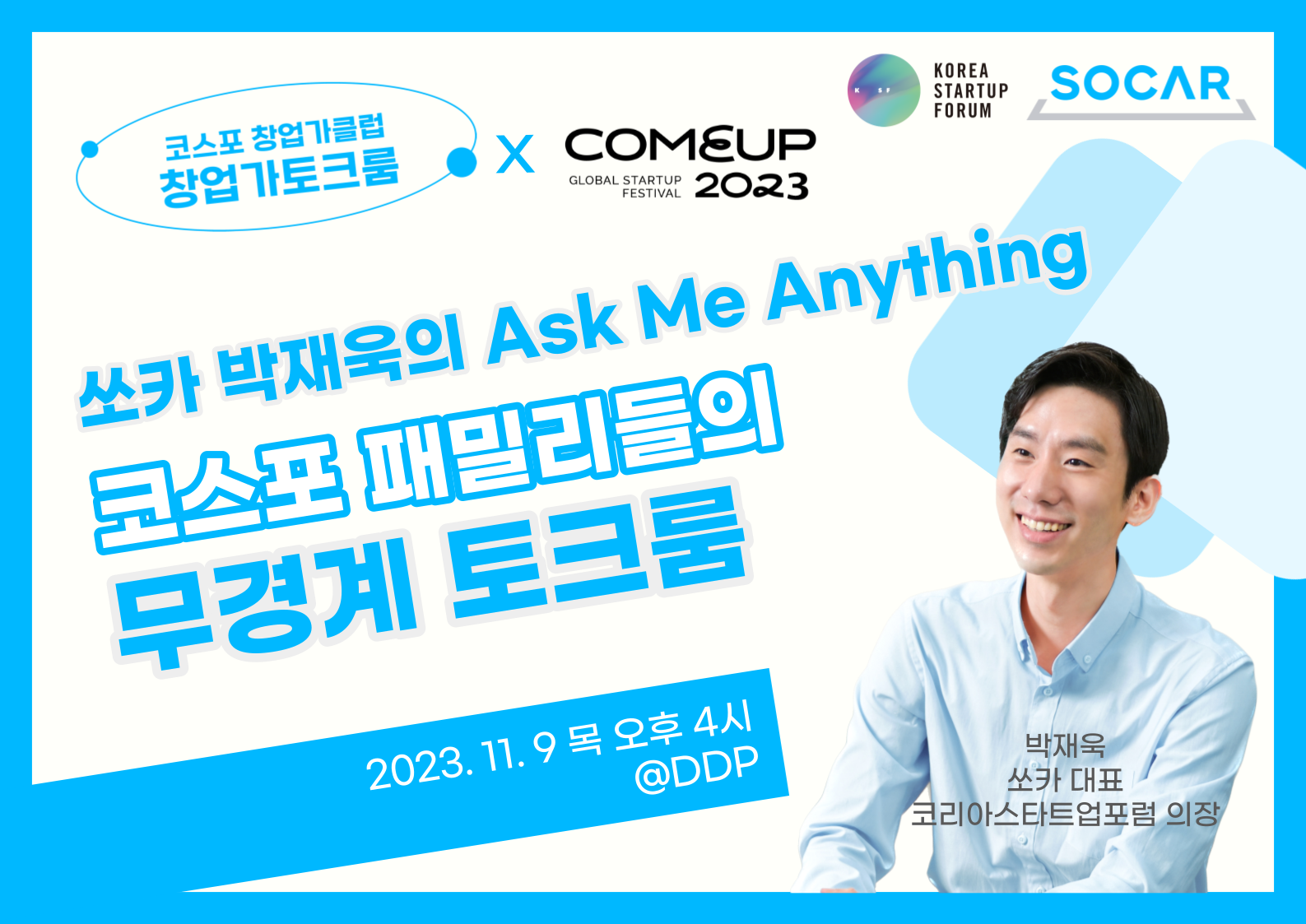 ✔️ 참석대상 : 쏘카 박재욱 대표 외 코스포 정회원 창업가/대표 20인 내외