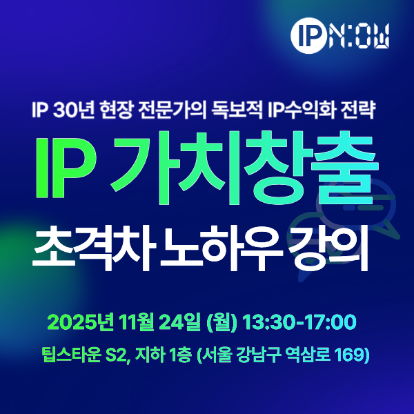 30년 IP 전문가로서의 실전 노하우와 전략을 공유하는 자리니, 회원사 여러분의 많은 관심과 참여 부탁드립니다.