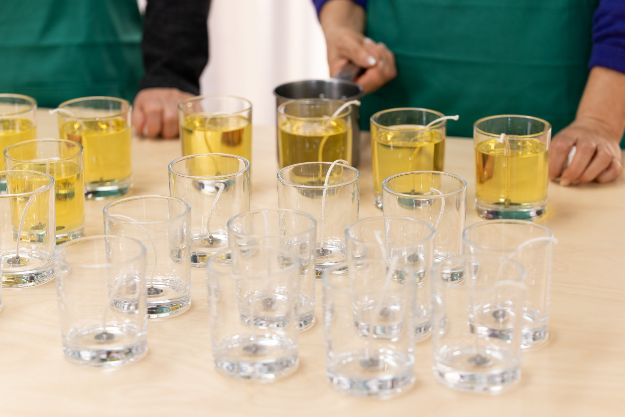 | 제품 제조에 함께하는 전문가 어르신들 (어르신들은 캔들 제조 자격증을 취득하셨다) |