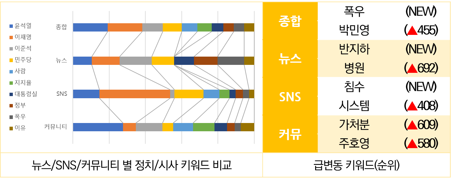 ์ด๋ฒ ์ฃผ #ํญ์ฐ #์ง์คํธ์ฐ ํค์๋ ๊ด๋ จํด์ ํ ์ฃผ๊ฐ์ ๋ฐ์ดํฐ๋ฅผ ๋ถ์ํ์ฌ ์ธ์ ๋ถํฐ ๋ด๋์ง, ํญ์ฐ์ ๊ด๋ จํด์ ๊ฐ ์ฑ๋์์์ ๋ฐ์ดํฐ ์ถ์ด๋ฅผ ์ธ๋ถ์ ์ผ๋ก ์คํผ์น๋ก๊ทธ๊ฐ ๋ถ์ํด๋ณด์์ต๋๋ค.