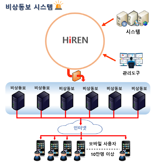 소개하고자 합니다. 하이렌(HiREN)은 고성능(High Performance)과 경보(Siren)의 합성어로 에이치투오시스템테크놀로지의 고성능 모바일 푸시 기술과