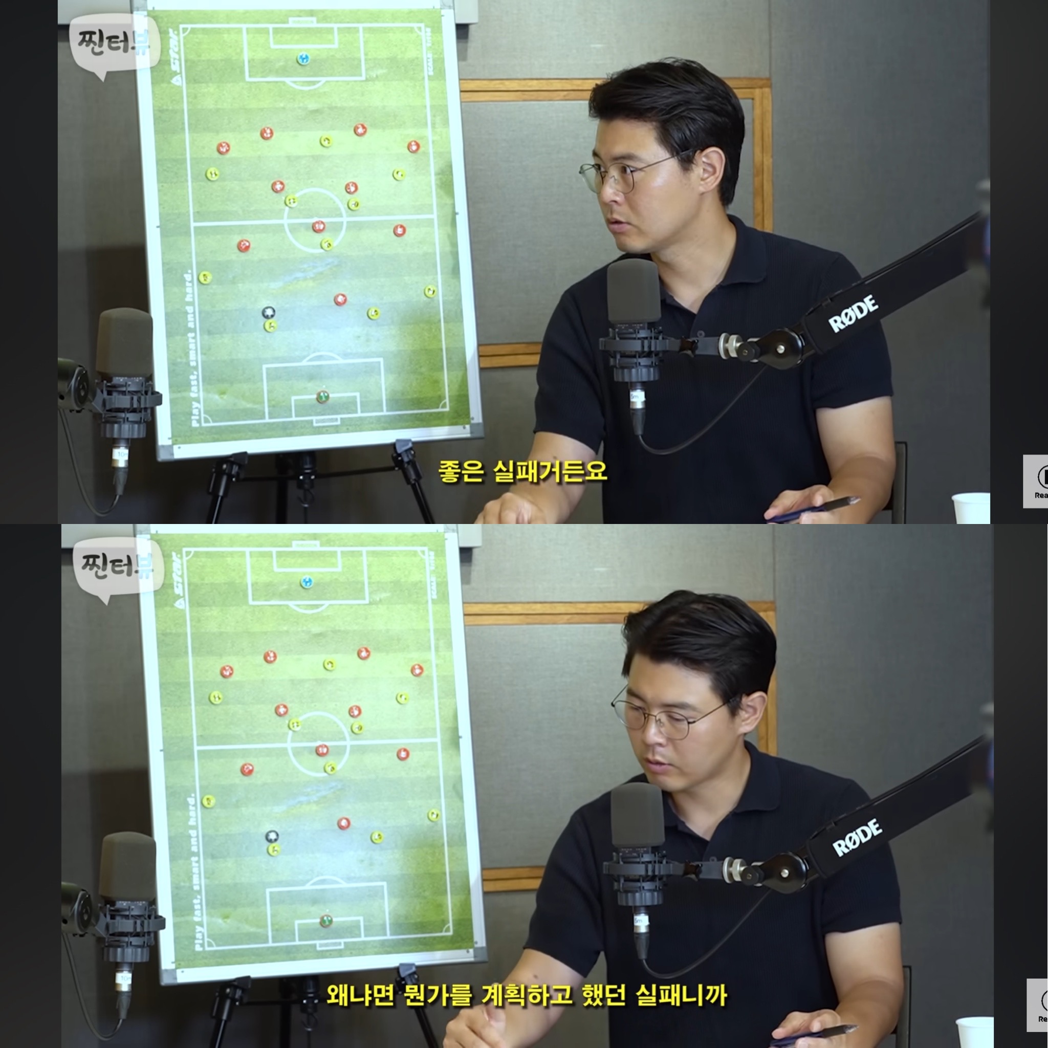 축구 유튜브 채널, '김진짜 Real Kim' 에 작년 8월에 올라온 영상입니다. 영국 유학파이자 전 수원삼성 코치인 김주표 코치님이 출연해서 30분 정도 대화를 나눕니다. 그런데 두 분의 대화에서 '축구'를 회사나 사업, 일로 바꿔서 들으면 놀랍도록 배울 점이 많습니다. 거의 모든 장면을 캡처해 두고 싶을 정도로 좋은 이야기들이 가득하고, 그 중에서 '실패'에 대한 이야기도 등장합니다. 전체 영상을 추천드립니다. |