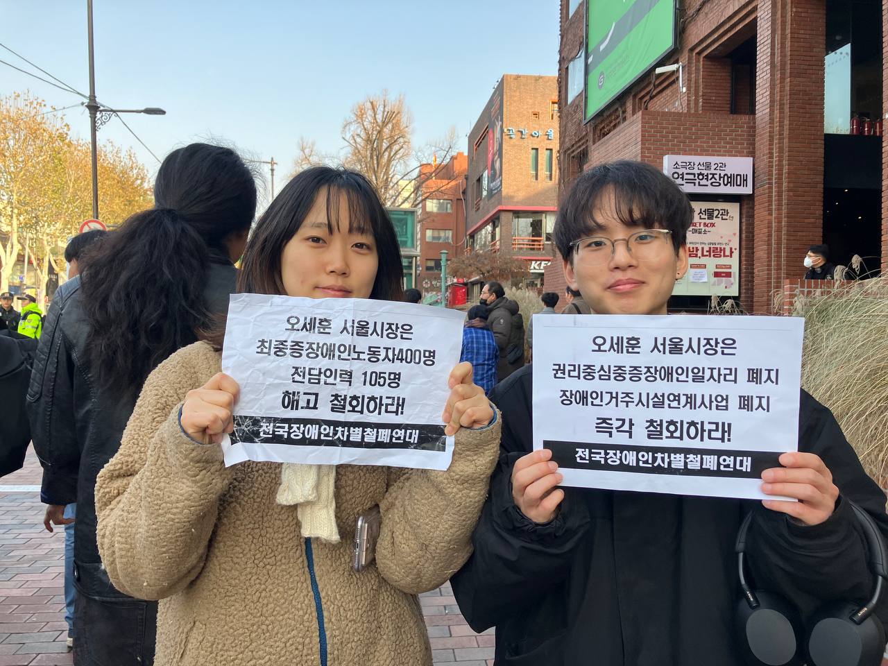 "장애인이 지하철을 타고, 버스를 타고, 기차를 타고, 성소수자가 광장에 나와 행진을 하고, HIV/AIDS 감염인이 섹스를 하고, 게이 군인이 군 복무를 하고, 동성 부부가 혼인신고를 하고, 퀴어 청소년이 숨지 않고 학교에 다녀도 세상은 망하지 않습니다. 평등은 해롭지 않습니다." |