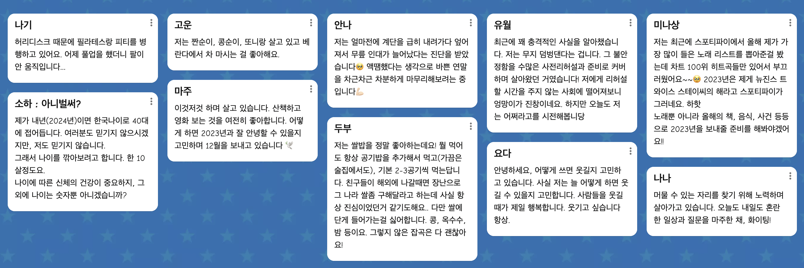 서울인권영화제의 새 얼굴들과 함께 한 줄 편지, 아니 한 줄 TMI를 써보았어요. 여러분의 한 줄 일상은 어떠신가요?