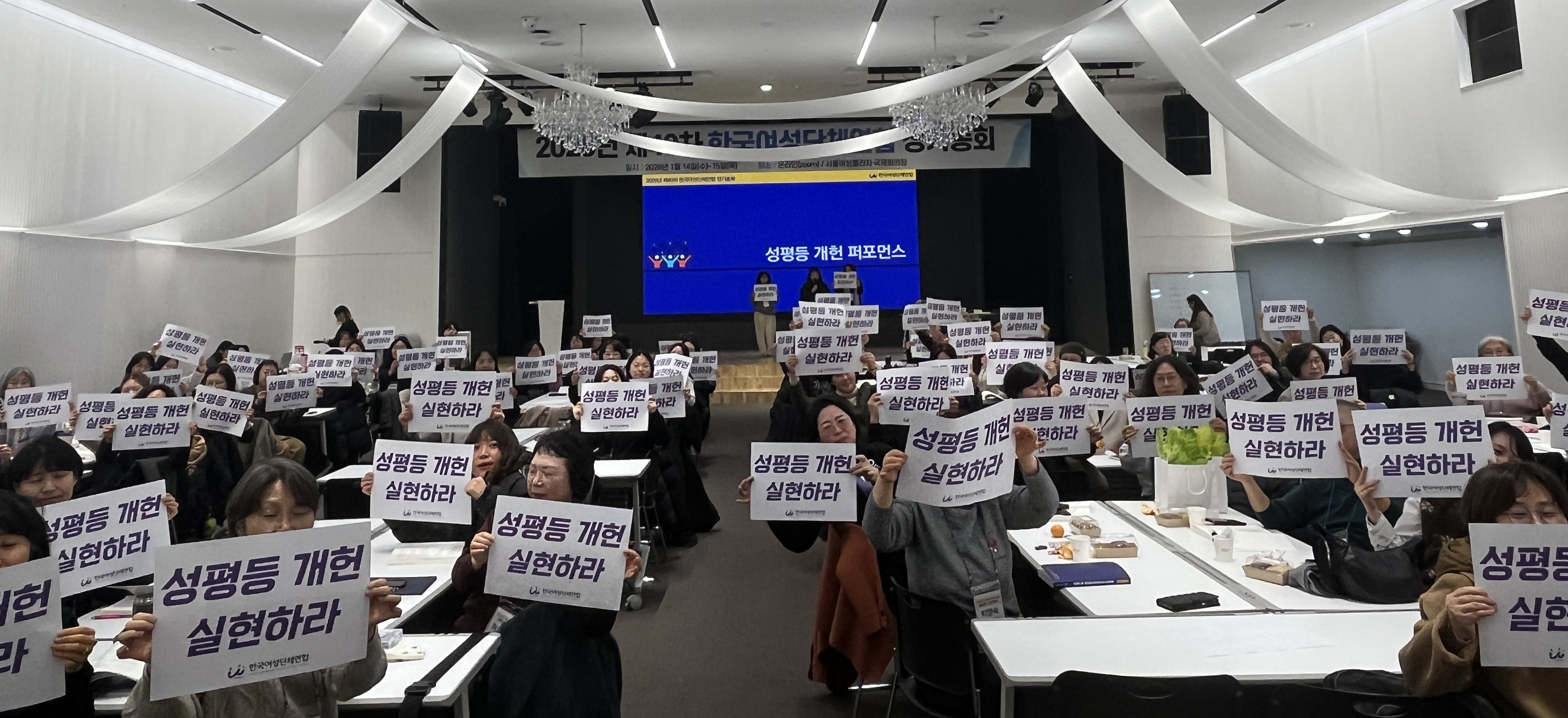 둘째날 진행된 본회의에서는 제15대 공동대표 선거를 포함해 2025년 사업과 결산 보고, 2026년 사업계획안과 예산안을 논의했습니다. 특히 2026년 성평등 개헌운동의 시작을 알리고 함께 결의를 다지기 위한 퍼포먼스도 진행되었습니다. |