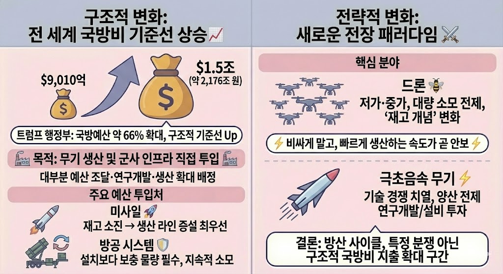 ํ๊ธฐ ์์ํ์ด์. ์ง๊ธ ๋ฐฉ์ฐ์ฃผ๋ฅผ ๋ค์ ๋ด์ผ ํ๋ ์ด์ ๋ ์ ์ ๋ด์ค ๋๋ฌธ์ด ์๋๋ผ ๊ตญ๋ฐฉ๋น ๊ตฌ์กฐ ์์ฒด๊ฐ ์ซ์๋ก ๋ฐ๋์๊ธฐ ๋๋ฌธ์ด์์. ์ด๋ฒ ๋ฐฉ์ฐ ์ฌ์ดํด์ ํน์ ๋ถ์ ํ๋๋ก ์์ง์ด๋ ๊ตญ๋ฉด์ด ์๋๋ผ, ์ ์ธ๊ณ ๊ตญ๋ฐฉ๋น ์ง์ถ ๊ธฐ์ค์ ์ด ๊ตฌ์กฐ์ ์ผ๋ก ์ฌ๋ผ๊ฐ ๊ตฌ๊ฐ์ด์์.