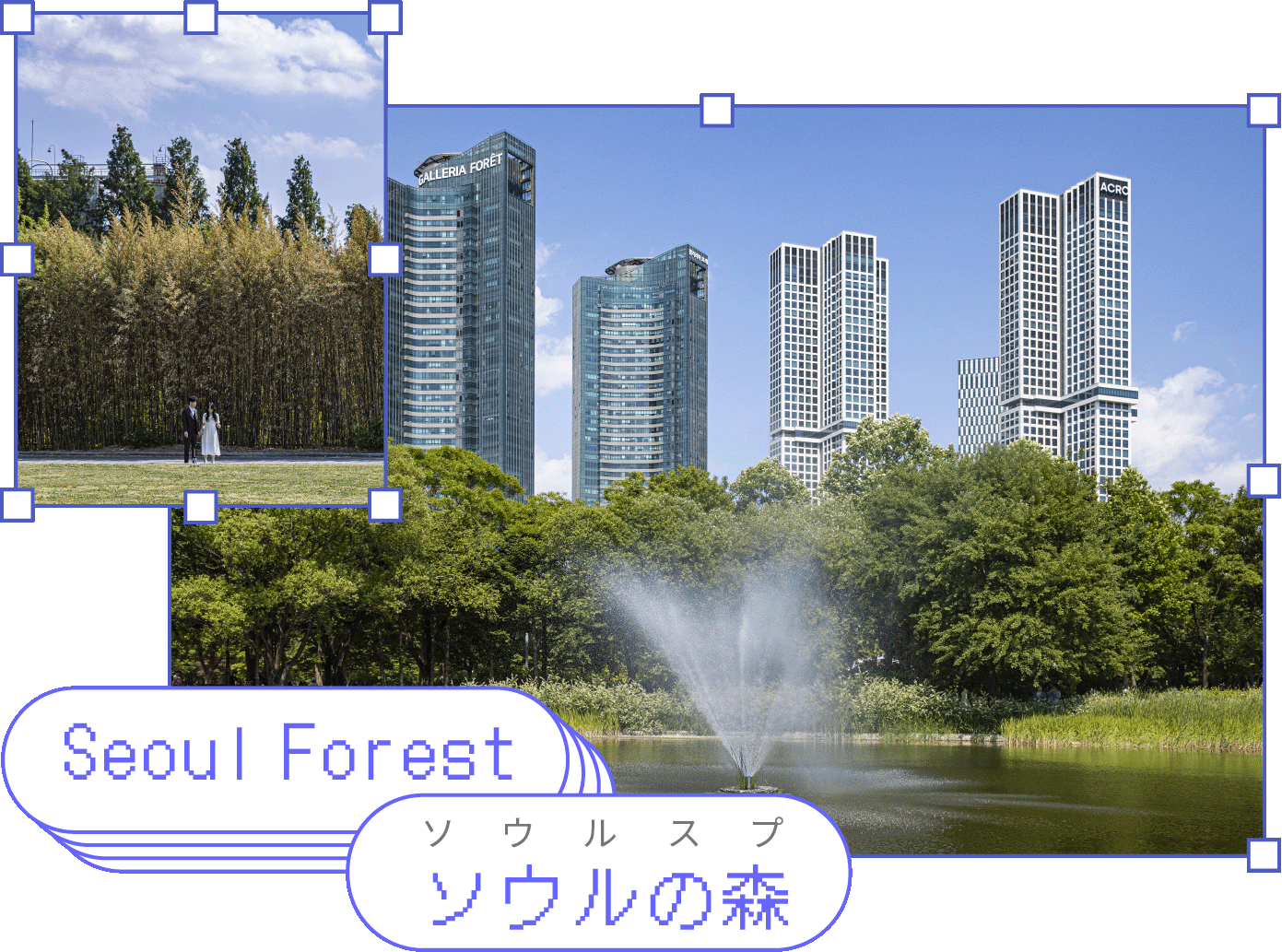 ソウルの森🌲🌲って聞いたことある?狎鴎亭洞から聖水大橋を渡った所にある、とても大きい森林公園のこと。そびえ立った三つのビルが公園のどこからでも見えるけど、それらは有名な高級タワーマンション。トゥリマジェ(Trimage)、ギャラリア・フォーレ(Galleria Foret)、アクロ・ソウル・フォレスト(Acro Seoul Forest)がその主人公。BTSのジョングクとジェイホープ、Girl's Dayのユラ、SUPER JUNIORのドンへとイトゥク、シウォン、元HIGHLIGHTのヨン・ジュンヒョン、Block Bのパク・キョン、SHINeeのテミン、俳優のイ・ジェフンとキム・ユンジンなど芸能人も多く住んでることで有名。ソウルの森の手前にあるアンダースタンドアベニューも見どころ満載なので要チェック!鏡の池に映し出されるメタセコイア並木、イチョウ並木、子ども公園などでは映える写真が撮れるからぜひ行ってみて!