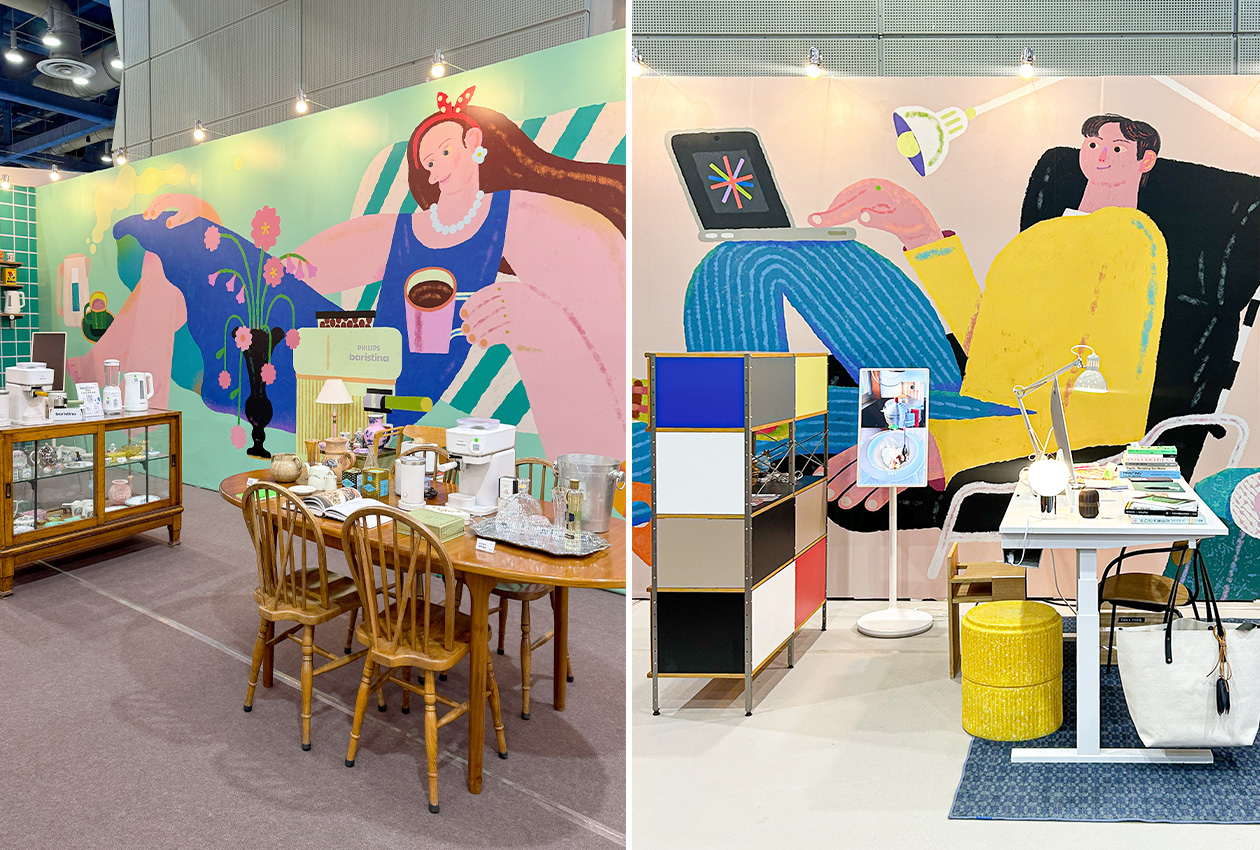 ๋ค์ ์ ๋ณํ๊ณ , ์ด๋ฅผ ํ๋์ ๊ณต๊ฐ์ผ๋ก ์์ฐ๋ฅด๋ ๋ฐ ์ง์คํ์ด์. ๊ณต๊ฐ์ ๋ค์ด์ฐ์ ๋ ๋จผ์ ๋์ ๋ค์ด์ค๋ ์ปฌ๋ฌ๊ฐ ๊ทธ ์ฌ๋์ ์ทจํฅ์ ๊ฐ์ฅ ์ง๊ด์ ์ผ๋ก ๋ณด์ฌ์ค๋ค๊ณ ์๊ฐํ๊ฑฐ๋ ์. ํํธ์ผ๋ก๋ ๊ฐ๊ตฌ์ ์ํ๋ง์ผ๋ก๋ ์๋๊ฐ์ด ๋ถ์กฑํ ์ ์์ด, ๋ฒฝ๋ฉด์ ์ฑ์ฐ๋ ์ผ๋ฌ์คํธ๋ฅผ ์ ๊ทน ํ์ฉํ์ด์. ๋ฉ์ถฐ ์๋ ๊ทธ๋ฆผ๋ณด๋ค๋ ์์ง์์ด ๋๊ปด์ง๋ ์ฅ๋ฉด์ผ๋ก 1์ง๋ฌ๋ฅผ ํํํ๊ณ ์ถ์์ด์. ๊ทธ ๋์ ์์ ๊ฐ๊ฐ์ ์ทจํฅ๊ณผ ๋ผ์ดํ์คํ์ผ์ด ๋ด๊ธธ ์ ์๋๋ก ์๊ฐ๋๊ป ์์ฒญ๋๋ ธ์ฃ . |