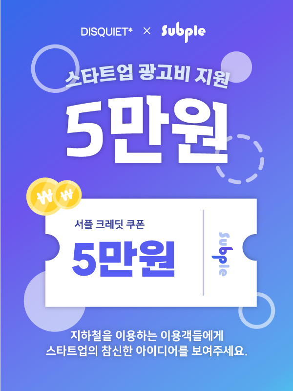 '서플'에서 디스콰이엇에 계신 스타트업과 예비 창업자분들에게 5만 원의 광고 크레딧을 지급해 드리고 있어요!