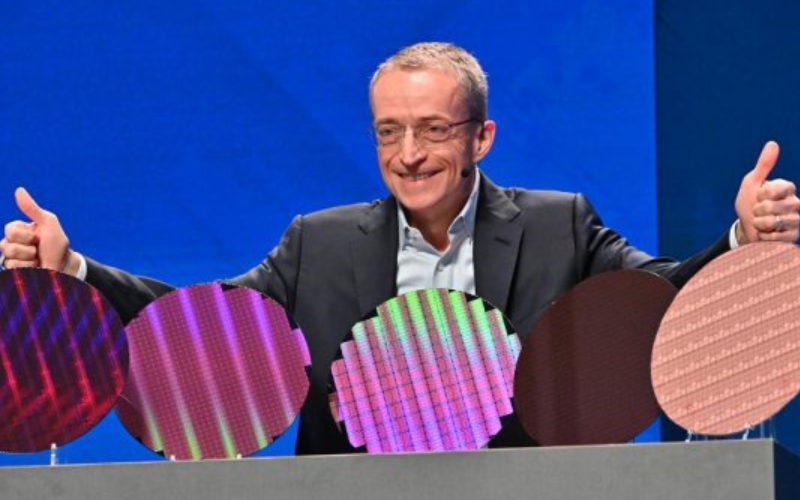 인텔의 CEO 펫 겔싱어가 첨단 공정으로 제작된 웨이퍼를 소개하고 있다. ⓒ 사진 인텔 제공, 뉴시스 |