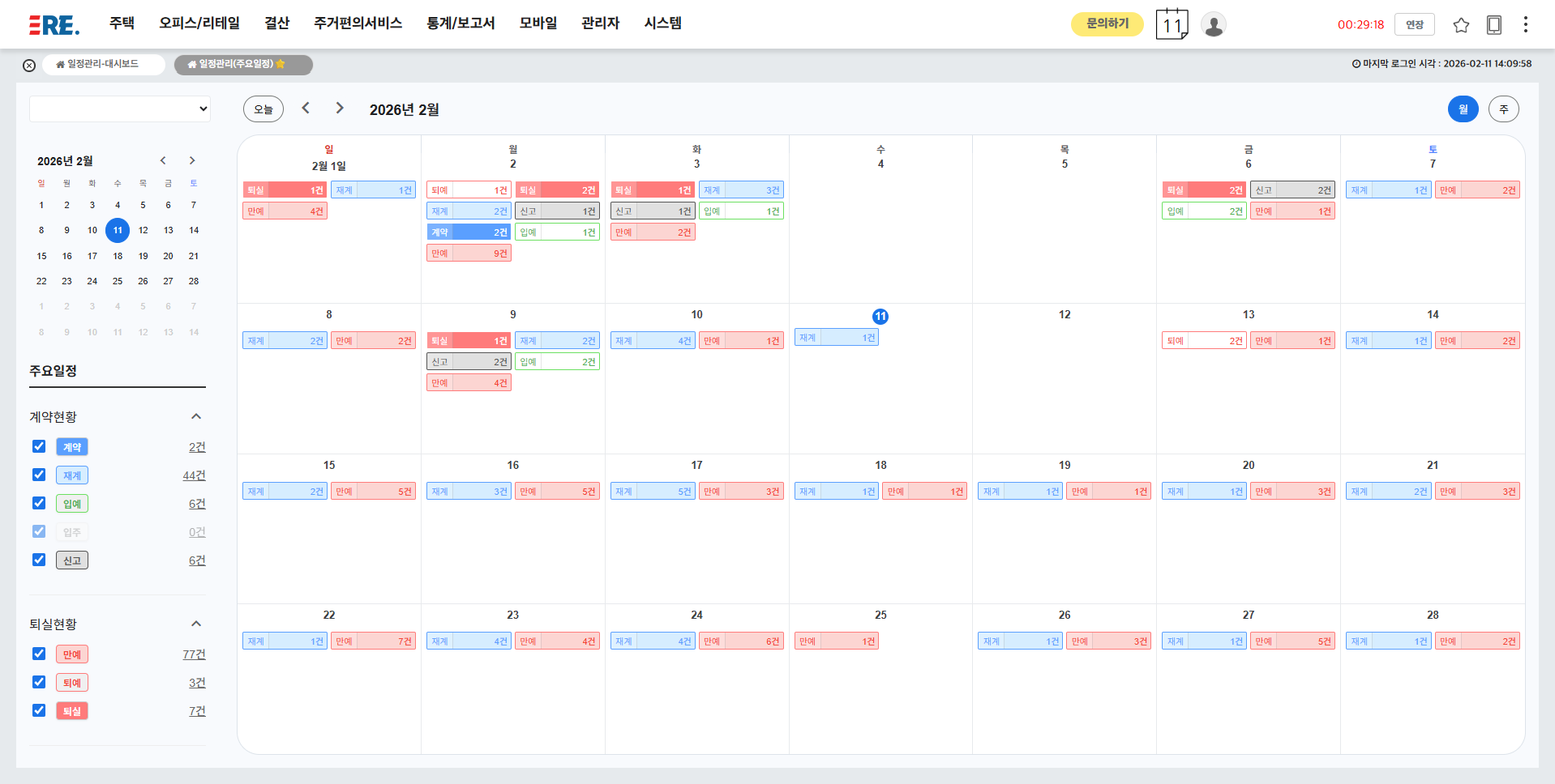 이제 입주, 퇴거, 신고 등 주요일정을 놓치지 않는 완벽한 업무 처리를 돕기 위해 새로운 일정관리 캘린더가 찾아옵니다.