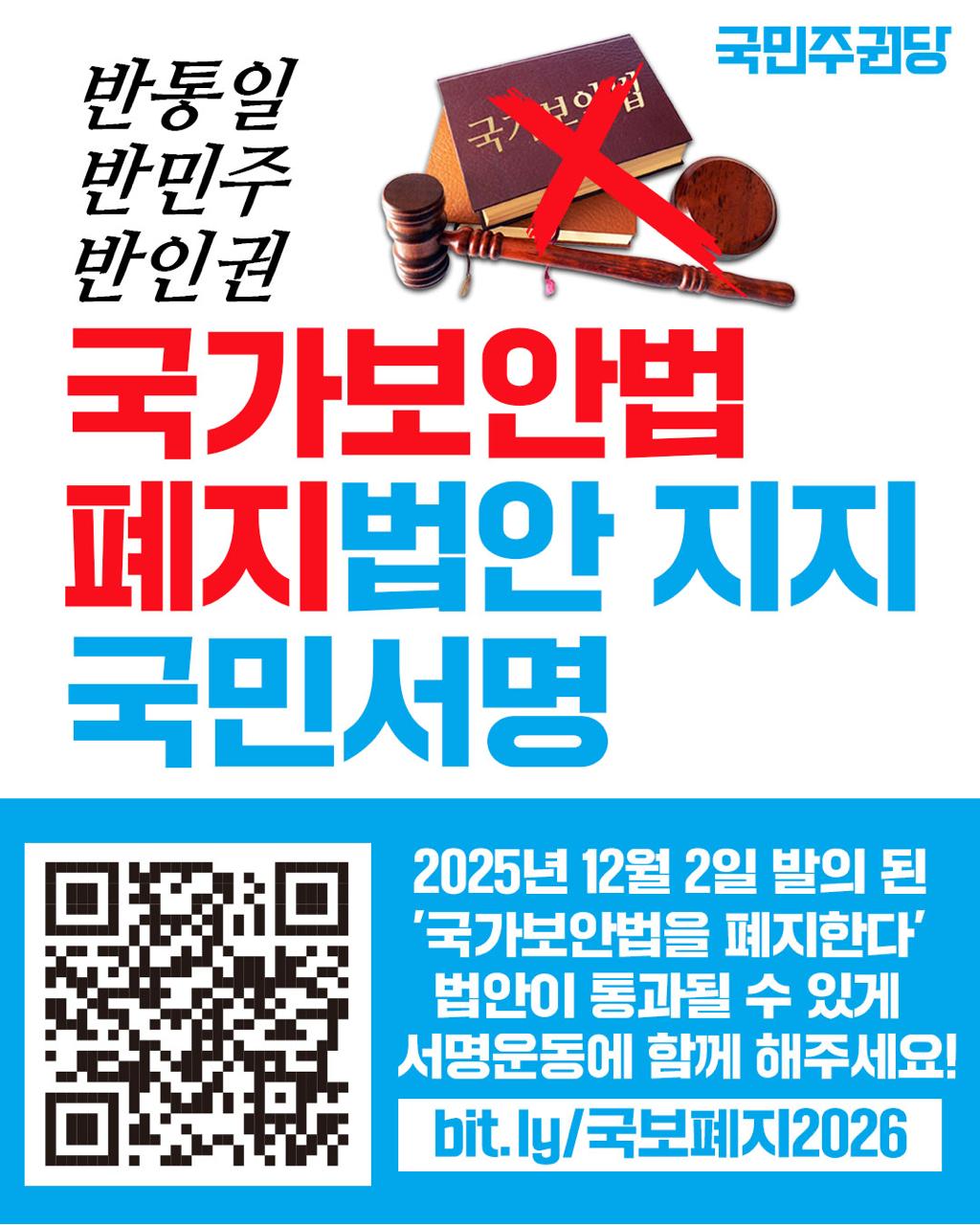폐지법안을 지지하는 국민서명을 널리 많이 받아 올해 안에 국회가 국가보안법을 폐지하도록 합시다!