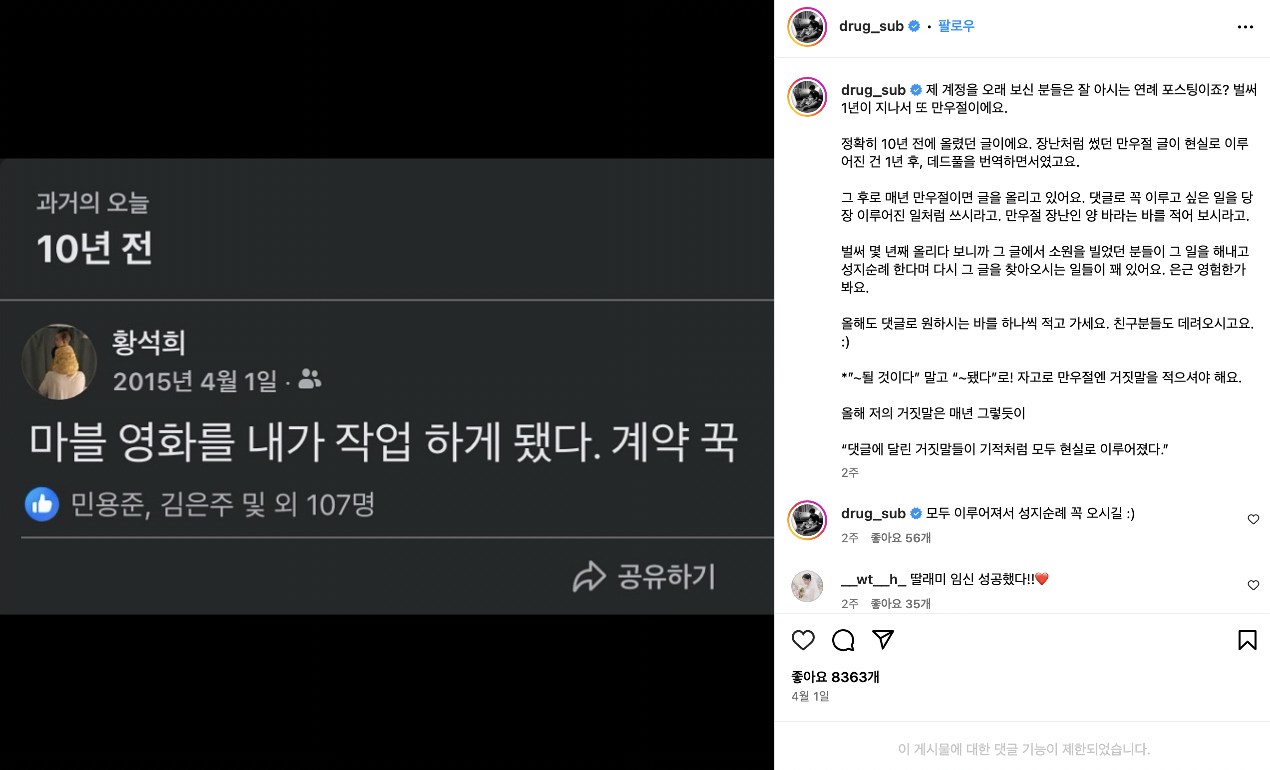์ถ์ฒ: ํฉ์ํฌ ์ธ์คํ๊ทธ๋จ(@drug_sub) |