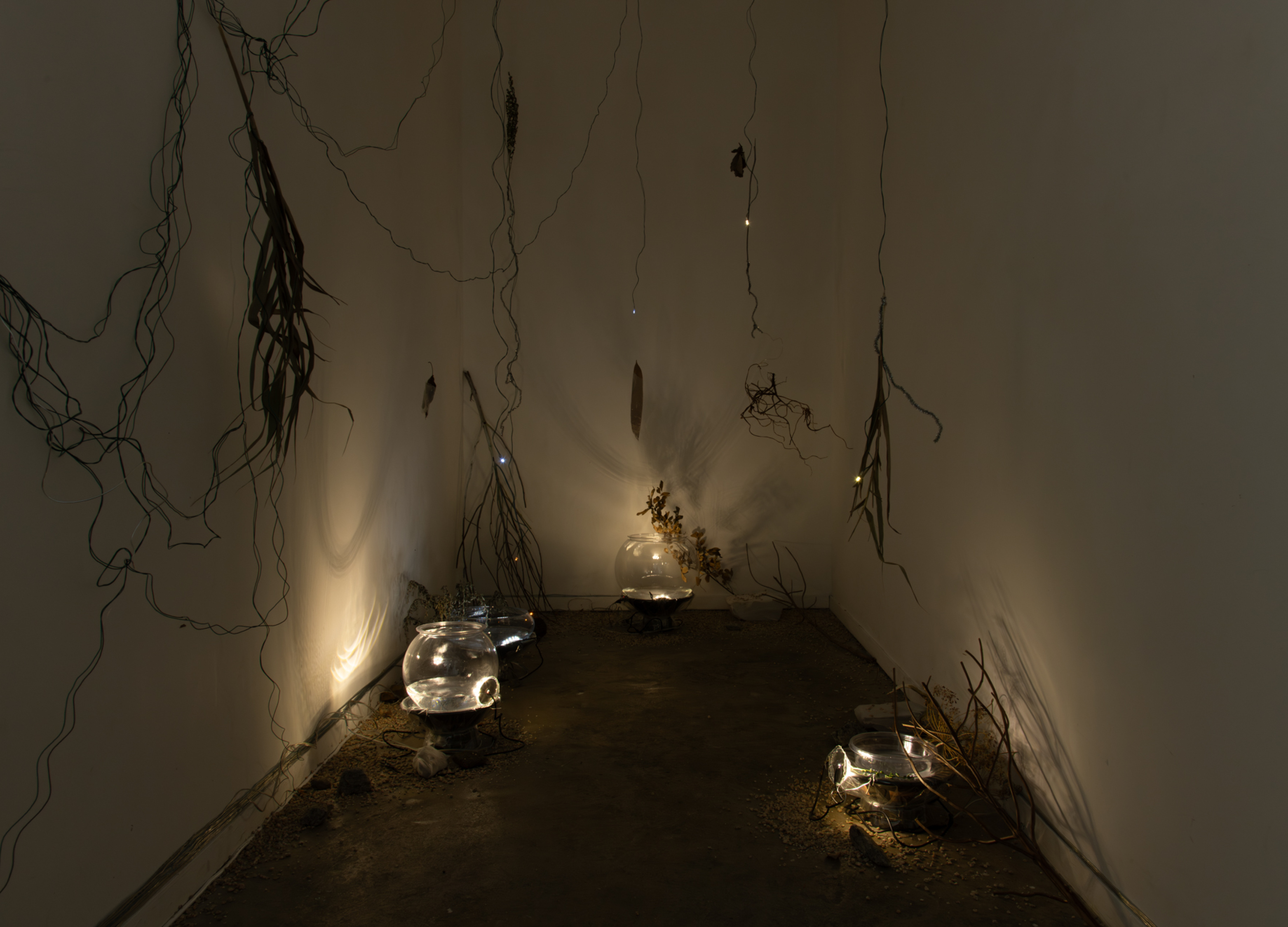 | 연민하는 바닥 | 스피커 유닛, 물, 마른풀, 혼합매체, 가변 사이즈, 2025