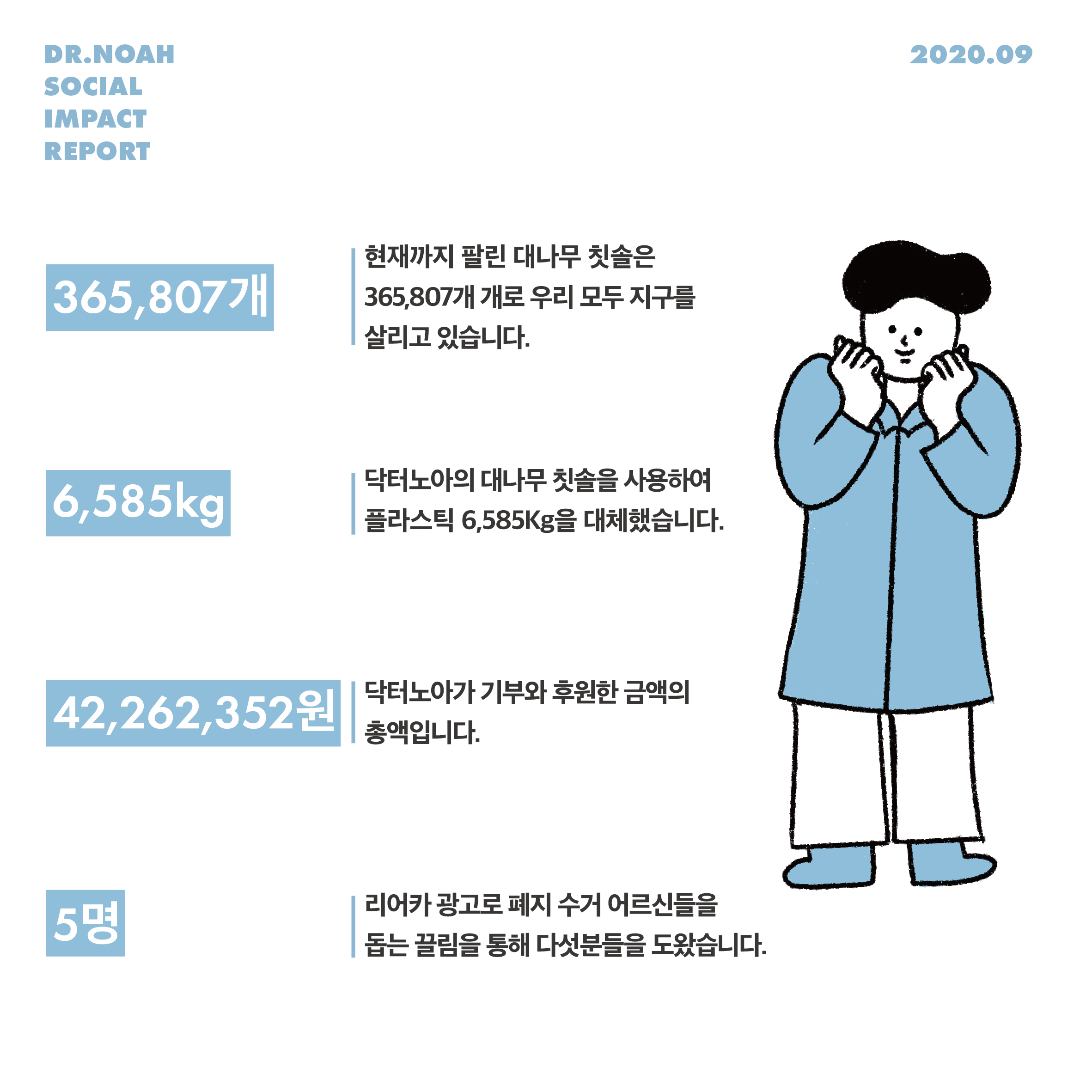 내가 사용하는 칫솔 브랜드가 어떤 곳인지 궁금해 본적 있나요? 오늘은 대한민국에서 유일하게 대나무 칫솔 공장을 가지고 있는 '닥터노아'의 이야기를 해보려 합니다! #1. 닥터노아라는 브랜드에 관하여 닥터노아는 2016년 빈곤 문제와 환경문제를 기업의 방식으로 해결하기 위해 만들어진 친환경 오랄케어 스타트업이에요. 어떻게 하면 더 많은 사람이 대나무 칫솔을 사용할 수 있을까 고민하다가 플라스틱 칫솔만큼 높은 퀄리티의 대나무 칫솔을 만들면 되겠다는 생각에 지난 몇 년간 대나무 칫솔 제조 기술에 힘을 쏟았어요. 그리고 마침내 마루칫솔을 만들게 되었답니다! 전 세계 대부분의 대나무 칫솔은 여전히 중국의 공장에서 만들어지지만, 닥터노아는 우리나라에서 유일하게 대나무 칫솔을 '직접 제조'하고 있어요! #2. 미국에서도 팔고 있어요! 닥터노아는 지난여름, JUNI라는 이름으로 미국 시장에 진출했어요. 여러분들이 쓰는 마루칫솔, 이제는 미국에서도 사용할 수 있습니다! 전 세계에 대나무 칫솔 열풍을 만들어 갈 닥터노아와 JUNI를 지켜봐 주세요! #3. 스타트업은 힙한거 아냐? (feat.닥터노아 웹툰) 닥터노아를 만들어 가는 사람들의 이야기도 빠질 수 없죠! 닥터노아는 2020년에 더 크고, 체계적인 구조를 갖춘 공장과 사무실로 이사를 했어요. 끊임없이 성장하기 위해서 더 노력하고, 변화를 실천 중이랍니다! 닥터노아의 모습을 디자이너 '이니'가 웹툰으로 연재 중인데요, 칫솔 만드는 스타트업의 일상이 궁금하신 분은 아래의 버튼을 눌려주세요! #4. 닥터노아가 바꿔가는 세상 (feat.소셜임팩트리포트) 뉴스레터가 유익했나요? 닥터노아 뉴스레터에서 여러분이 듣고 싶은 이야기를 알려주세요! 닥터노아 뉴스레터를 추천하고 싶다면? 아래의 닥터노아 뉴스레터를 공유해주세요! |