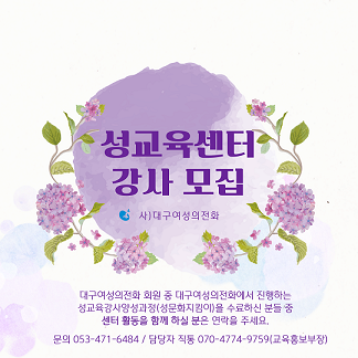 - 대구여성의전화 성교육센터에서 함께 활동하실 성교육 전문강사님을 기다립니다.