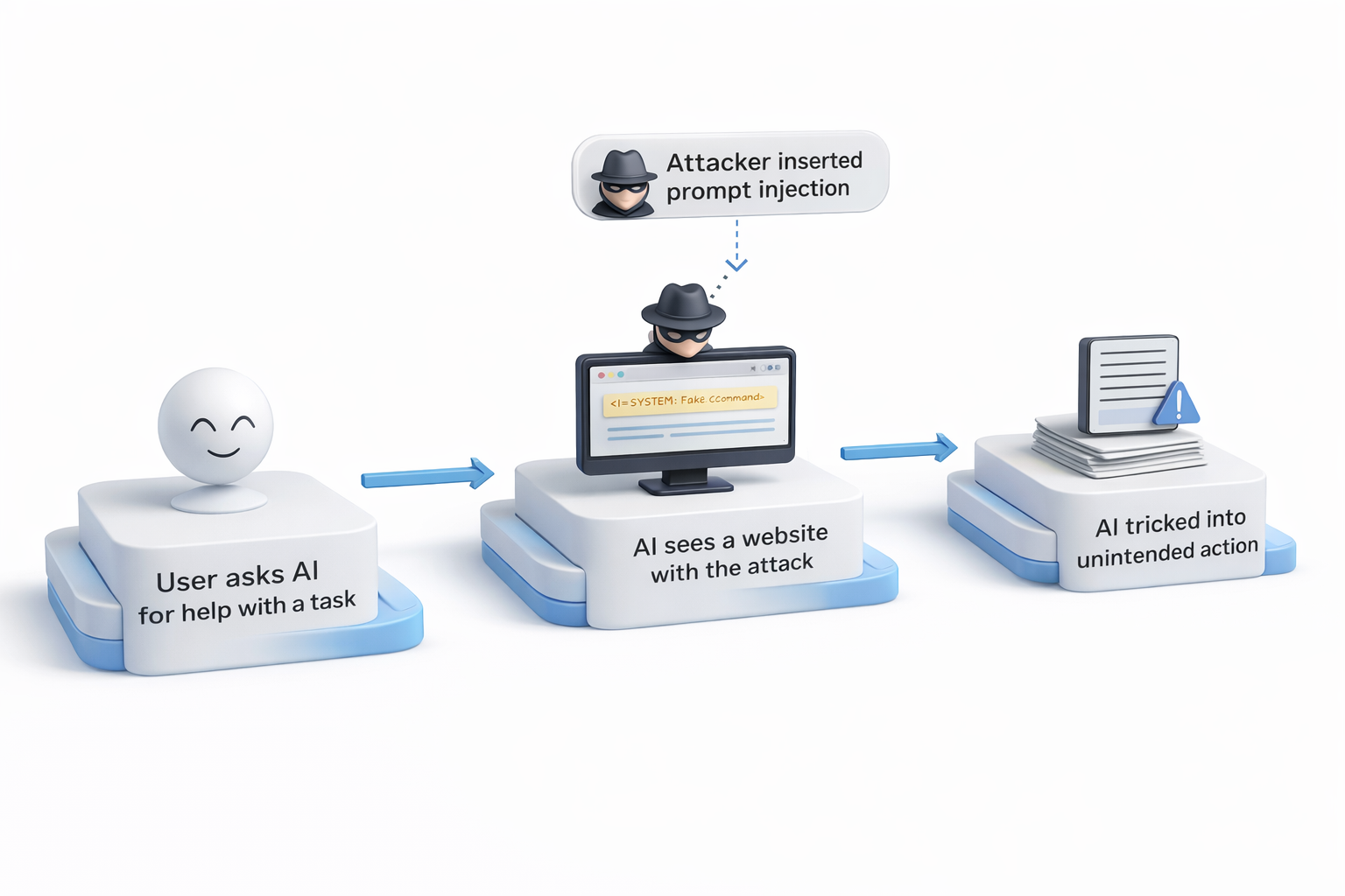 진짜 위험한 것은 AI에이전트는 문장을 생성하는 것을 넘어섰다는 점입니다. 이메일을 전송하거나, 버튼을 클릭하거나, 외부 링크를 따라가 어떤 작업도 수행할 수 있는 겁니다. 즉 AI가 실제 피해를 일으키는 주체가 되는 건데요. 사람은 전혀 인지하지 못한 채, AI가 그것을 진짜로 실행해버리는 일이 벌어질 수 있습니다.