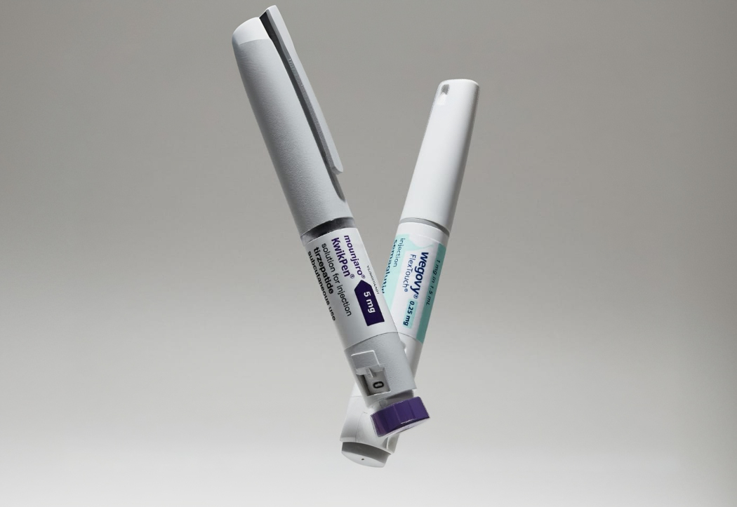 주사형 비만 치료제: 주사형 비만 치료제 가운데 위고비는 GLP-1 호르몬 수용체에 작용하는 세마글루타이드 기반 약물이고, 마운자로는 GLP-1과 GIP 두 가지 호르몬 수용체에 동시에 작용하는 티르제파타이드 기반 약물이다.