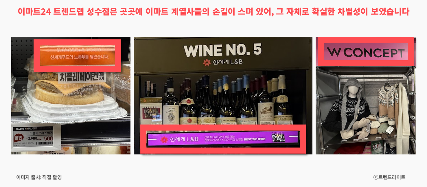 이런 구성은 ‘오직 이마트24에서만 만날 수 있다’는 점에서 소비자에게 확실한 매력 포인트가 됩니다. 동시에 CU나 GS25의 자체 기획보다 신뢰감이 높게 느껴지고요. 계열사가 가진 인프라 덕분에 규모의 경제에서도 밀리지 않죠. 다양한 유통 채널·브랜드·제조사를 계열사로 보유한 이마트만의 강점입니다.