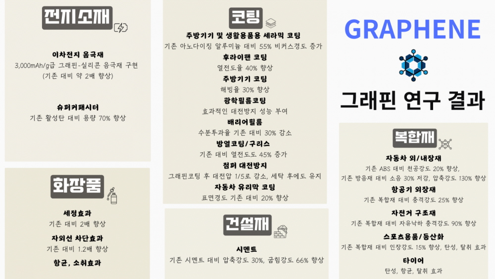 그래핀 응용 산업별 혁신적 성과와 전망: 전지소재부터 화장품까지