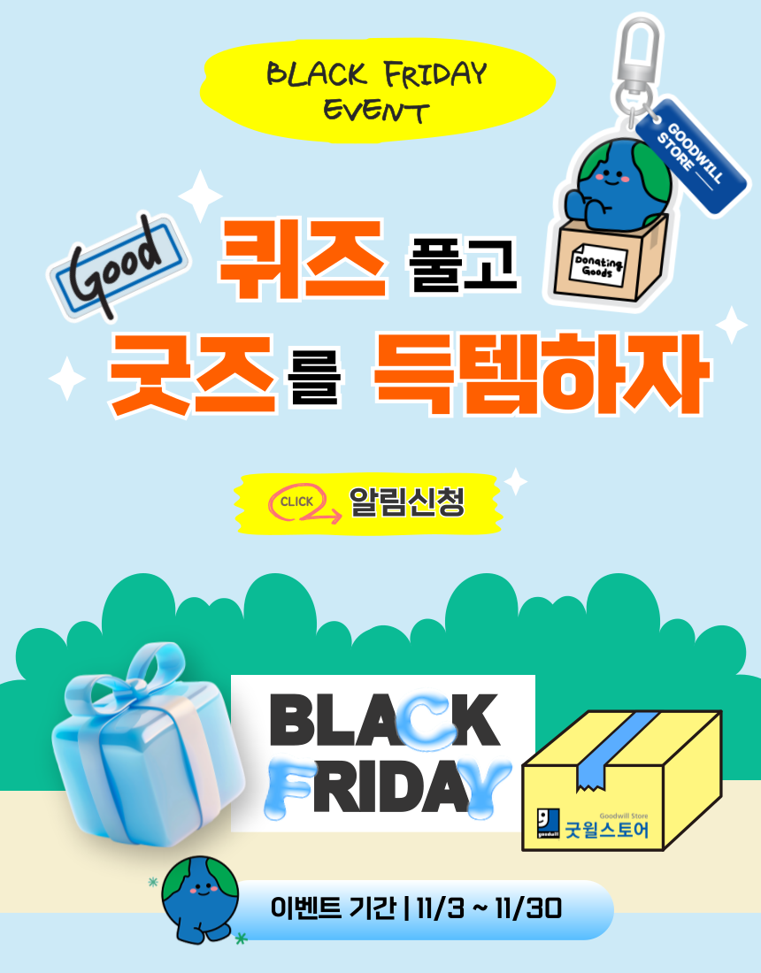 굿윌 블프 퀴즈로 굿즈 득템 준비하세요!