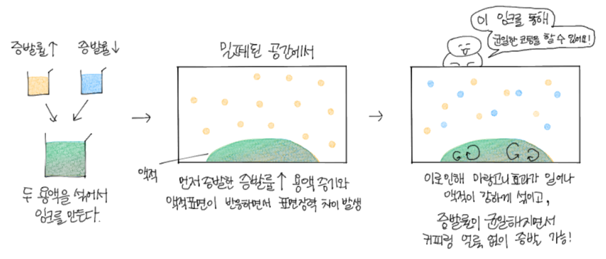 ๋๋ฉด์ ํ์ง ์ ํ๋ฅผ ์ด๋ํด์์ด์. ๊ทธ๋ฌ๋ ์ต๊ทผ ํ ์ฐ๊ตฌํ์ด ์ปคํผ๋ง ์ผ๋ฃฉ์ ์๋ฉธ์ํค๋ ๋ฐ์ ์ฑ๊ณตํ์ด์. ๋ฐฉ๋ฒ์ ์ด๋ ์ต๋๋ค. ์ฆ๋ฐ๋ฅ ์ด ์๋ก ๋ค๋ฅธ ์ฉ์ก 2๊ฐ์ง๋ฅผ ์์ด ์๋ก์ด ์ํฌ๋ฅผ ๋ง๋ค๊ณ , ์ผ์์ ์ผ๋ก ๋ฐํ๋ ๊ณต๊ฐ์์ ์ก์ ์ด