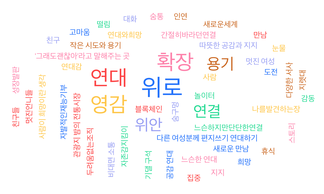 지난 6월 18일, 창고살롱 시즌2 마지막 살롱 '마무리 밋업'이 열렸어요. 이날 살롱에서는 그동안 나눈 대화와 함께한 시간들을 회고하고 한 분, 한 분 소감 들어보았는데요. 아쉬움에 울고, 웃으며 시간 가는 줄 모르고 긴 이야기 나눴어요. 살롱지기 혜영이 야심 차게 준비한 신기술(?) 로 '나에게 창고살롱이란?' 질문에 답을 모아 워드 클라우드로 함께 보았는데요. 위로, 위안, 영감, 용기, 연대, 연결, 확장, 친구라는 답이 많았어요. 관광지 밤의 전통시장, 두려움 없는 조직, 사람이 희망이란 생각, 숨통, 멋진 언니들, 지인과 타인 사이, 돈 주고 사는 친구 등 개성 있는 답변에 격하게 공감하기도 했고요.