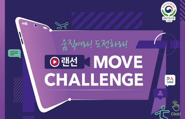 2020 랜선 무브챌린지 스포츠 역량 강화 프로그램 무브챌린지와 함께하는 비대면 이벤트 학생이라면 누구나 참여 가능했던 비대면 참여 이벤트 '2020 랜선 무브챌린지’가 성황리에 마무리되었습니다! 개인 또는 3인까지 팀을 이뤄 참여한 이번 이벤트는 무브챌린지 동작을 전용 앱 ‘PA 타이머’를 통해 촬영하고 업로드하는 방식으로 진행되었습니다. 12월 7~18일까지 총 4,250개의 참여 영상이 업로드 되었으며, 이 중 자세와 기록 시간을 기준으로 상위권을 선발하여 23일 각자 안전한 장소에서 온라인 중계 방식의 결승전을 치렀습니다. 자세한 스토리는 보도자료를 통해 확인해 주세요!