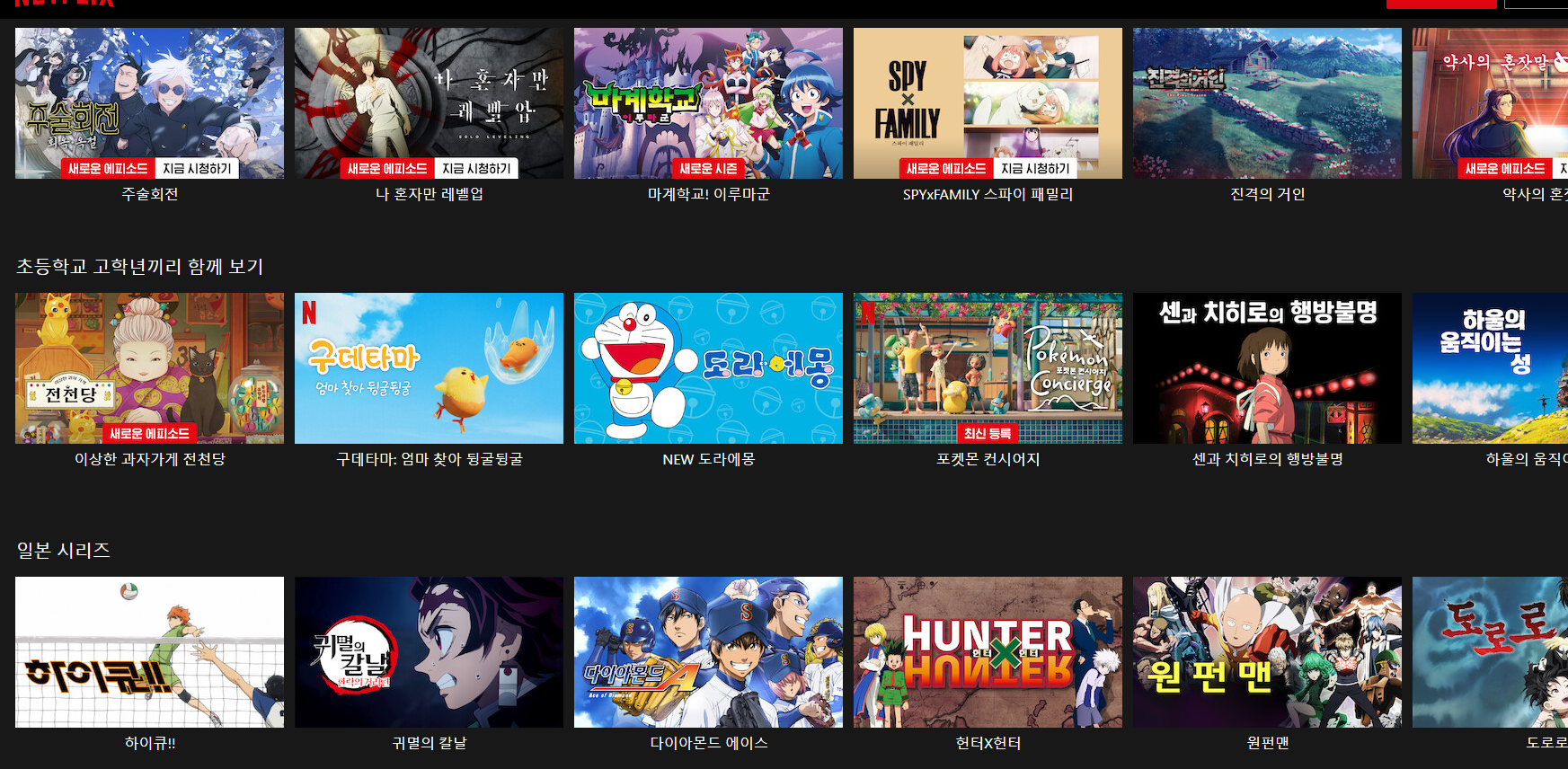 22년 기준으로 넷플릭스에서 애니메이션 콘텐츠를 소비하는 사람들의 수는 전체 구독자의 절반 이상을 차지하는 것으로 나타났습니다. 일본에서는 90% 이상의 구독자들이 애니메이션을 보았다고 해요.