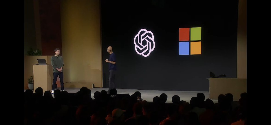 Dev Day 에는 어쩌면 모두가 예상(?)했던 사람이 손님으로 등장했어요. 바로 사티아 나델라 마이크로소프트 CEO. 마이크로소프트는 오픈AI 에 투자한 대주주이면서 오픈AI 의 클라우드컴퓨팅 인프라를 제공하는 기업이죠. 또 마이크로소프트는 오픈AI 의 인공지능을 주요 핵심 프로덕트에 도입했어요. 두 회사의 파트너십은 대기업과 스타트업의 가장 성공적인 협업사례를 보여주면서, 마이크로소프트가 전체 테크시장을 이끄는 원동력이 되기도 했죠.