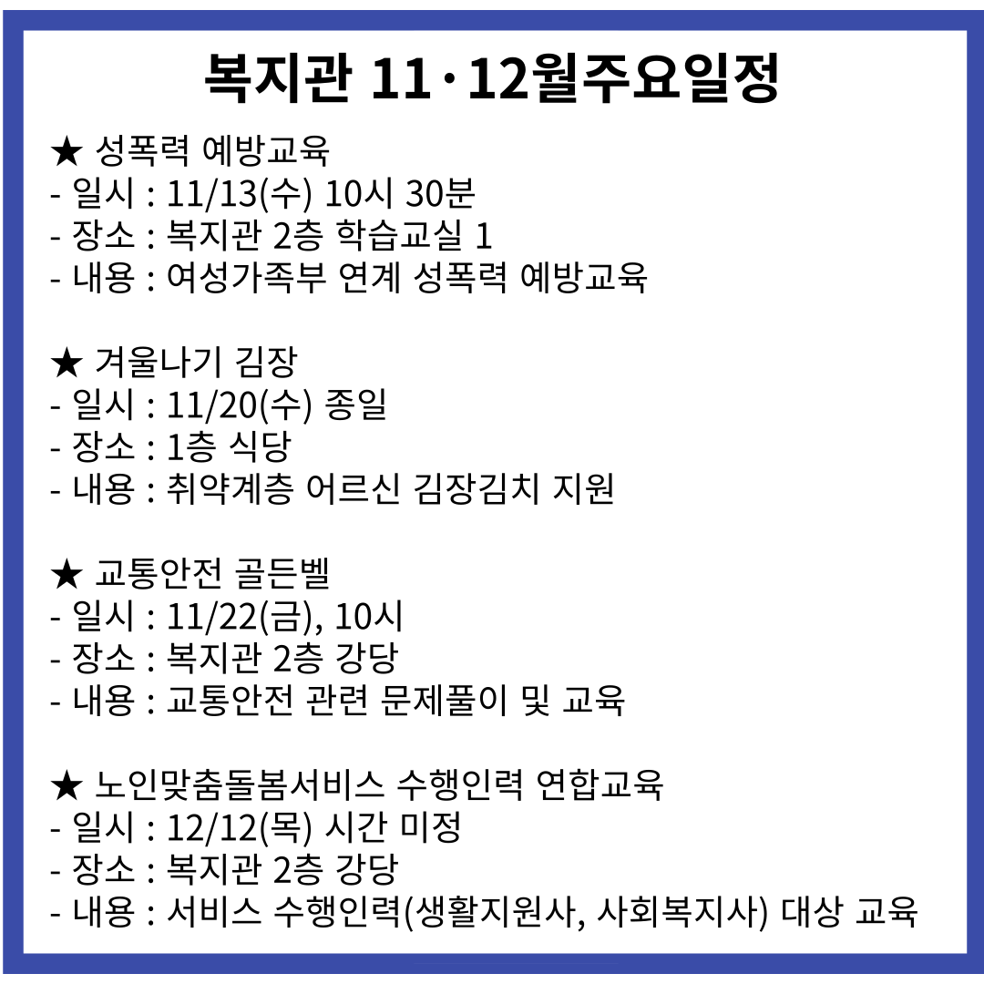 앞으로도 복지관 서비스를 이용하시는 어르신들이 즐거운 추억을 만드실 수 있도록 노력하겠습니다.