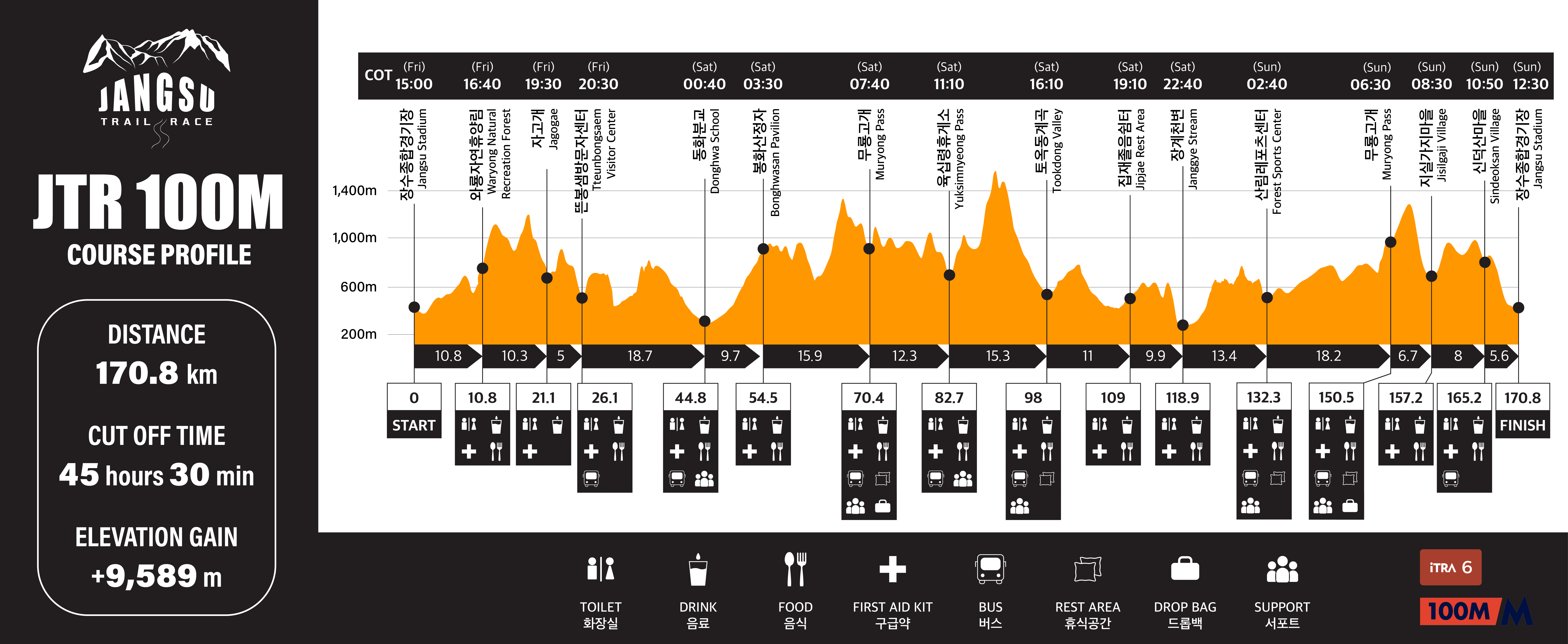 누적거리 150km, 드롭백이 가능한 지점이기 때문에 충분한 휴식을 취하고 넘어가는 것을 추천합니다. 억새가 일렁이는 장안산에서 완주를 위한 자신감을 가지고, 남은 20km를 도전해 보세요.