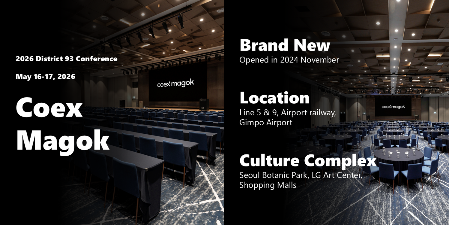 *District(디스트릭트)란? 클럽<에어리어<디비전 다음의 구조로서 60개 이상의 클럽으로 구성됩니다. 한국 토스트마스터즈는 하나의 District 93로 운영되고 있습니다.