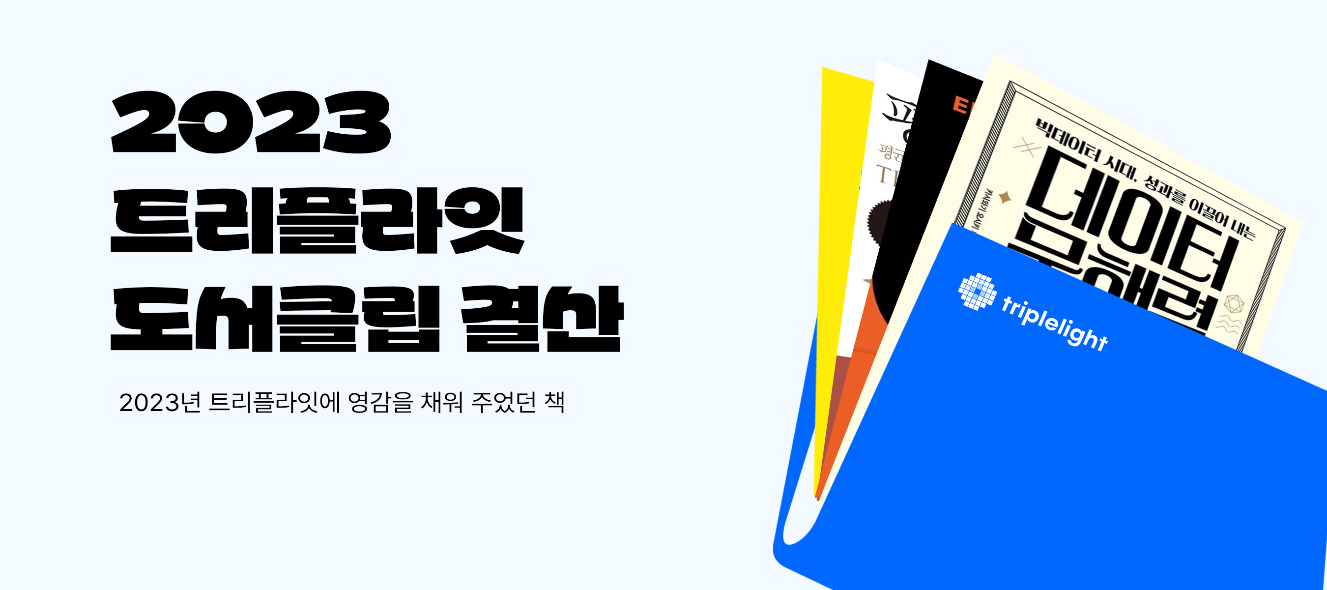 - 1순위 키워드는 #데이터로 문제 정의부터 임팩트 측정까지, 데이터 기반으로 일하는 조직이라는 게 독서 목록에서도 드러났습니다. 2순위 키워드는 #미래세대, #창의적사고방법으로, 올해 트리플라잇이 진행한 다수 프로젝트의 키워드이자 접근 방식과 연관된 책이 많았습니다.