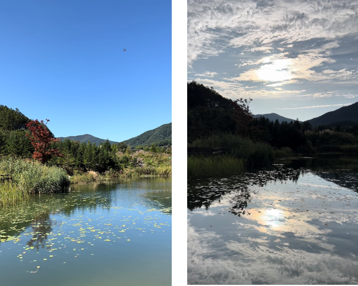 ์์ฆ ์ ๊ฐ ์๋ชฉ์์์ ๊ฐ์ฅ ์ข์ํ๋ ๊ณณ์ ํฐ ์ฐ๋ชป์ด ํผ์ณ์ ธ ์๋ '๊ฑฐ์ธ์ฐ๋ชป' ์ ์์์ด์์! ์๋ ์ฌ๋๋ง ๊ฐ ๊ฒ ๊ฐ์ ๊ณณ์ ์จ์ด์๋๋ฐ, ๊ฐ์ ์ต์์ ๋๋ฌ์ธ์ฌ ์ฐ๋ชป ๋ฐํฌ๊ธธ์ ๊ฑธ์ผ๋ฉด ๋ชจ๋ค์ ์ ์์ด ๋ ์ค๋ฅด๋ ๊ณต๊ฐ์ด์์. ๊ฑฐ์ธ์ฒ๋ผ ๋ฌผ์ ๋น์น๋ ๋๋ฌด์ ํ๋, ๊ทธ๋ฆฌ๊ณ ๋