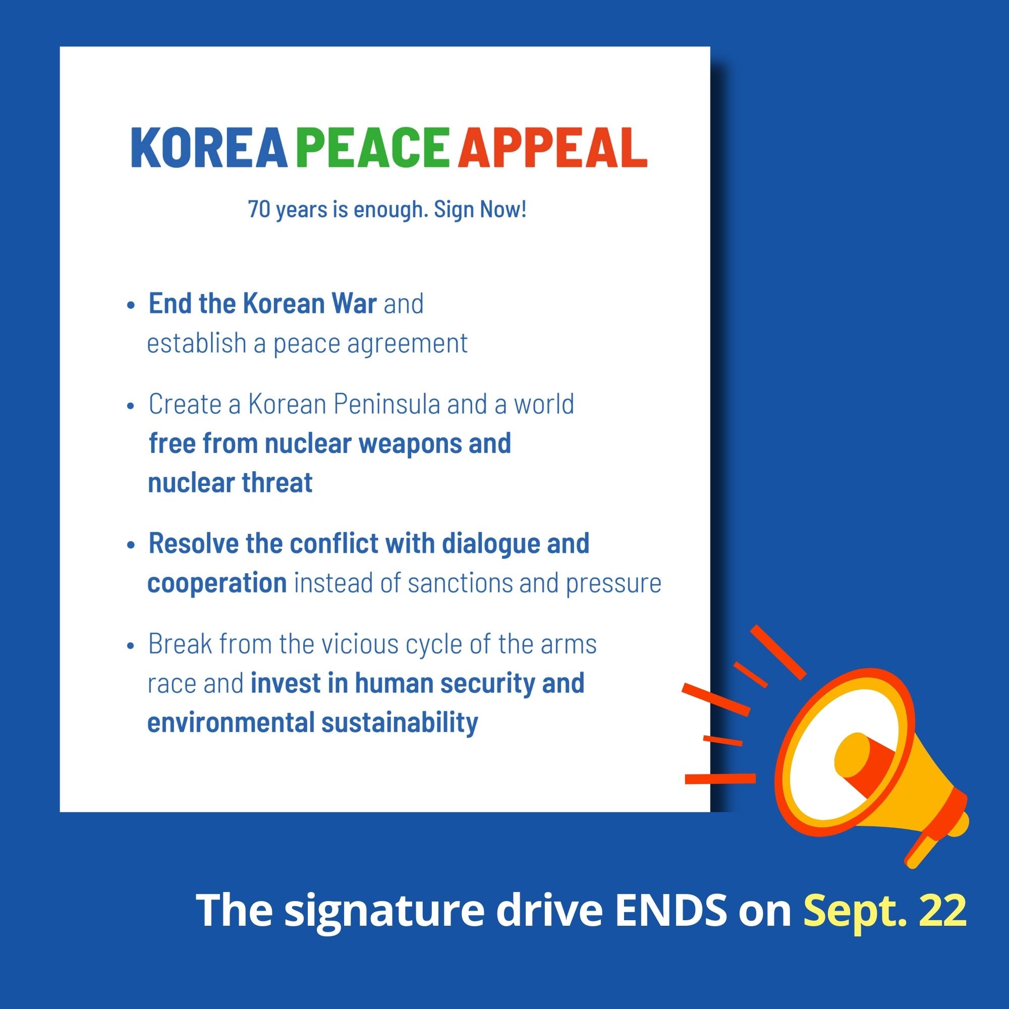 ๐ข On September 22, 2023 the <Korea Peace Appeal> Signature Drive will end!