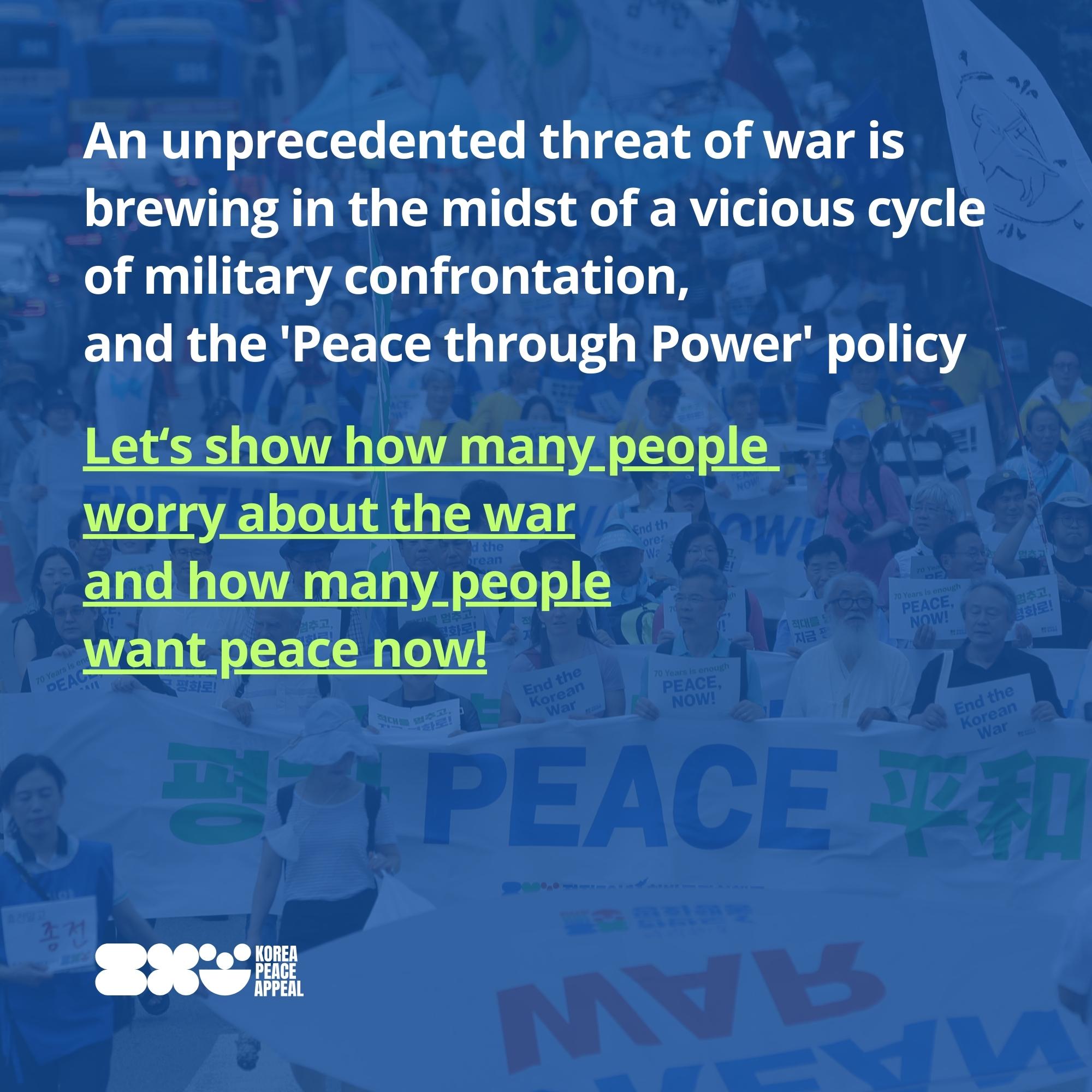 We urge everyone to raise an awareness of the gravity of the growing threat of war on the Korean Peninsula under the recent political situation. And we call for proactive efforts to create an environment for dialogue and prevent armed conflict.