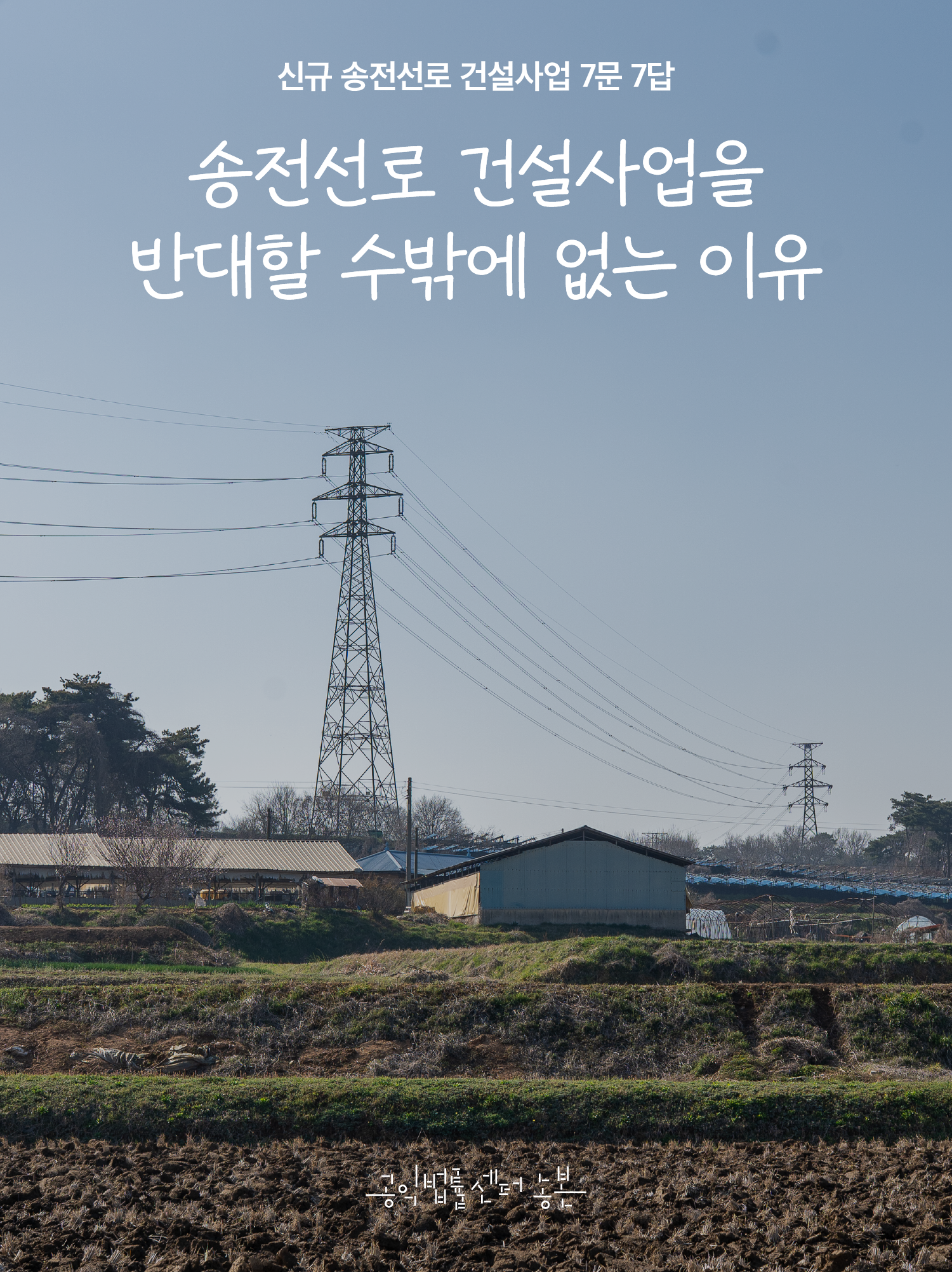 아직은 사업 초기 단계여서 충분히 '전면 재검토'가 가능합니다. 이를 위해 전국의 주민대책위들과 환경∙시민∙농민단체가 전국행동을 구성해서 활동하고 있습니다. 공익법률센터 농본은 이번 농본레터에서 고압 송전선로 및 송전탑 반대운동을 벌이고 있는 현장의 목소리를 담고, 7문 7답 형식으로 신규 송전선로 건설사업의 진실을 정리했습니다. 마을을 지키고, 인간으로서의 존엄을 지키려고 하는 송전선로 반대운동에 많은 관심과 지지를 부탁드립니다.