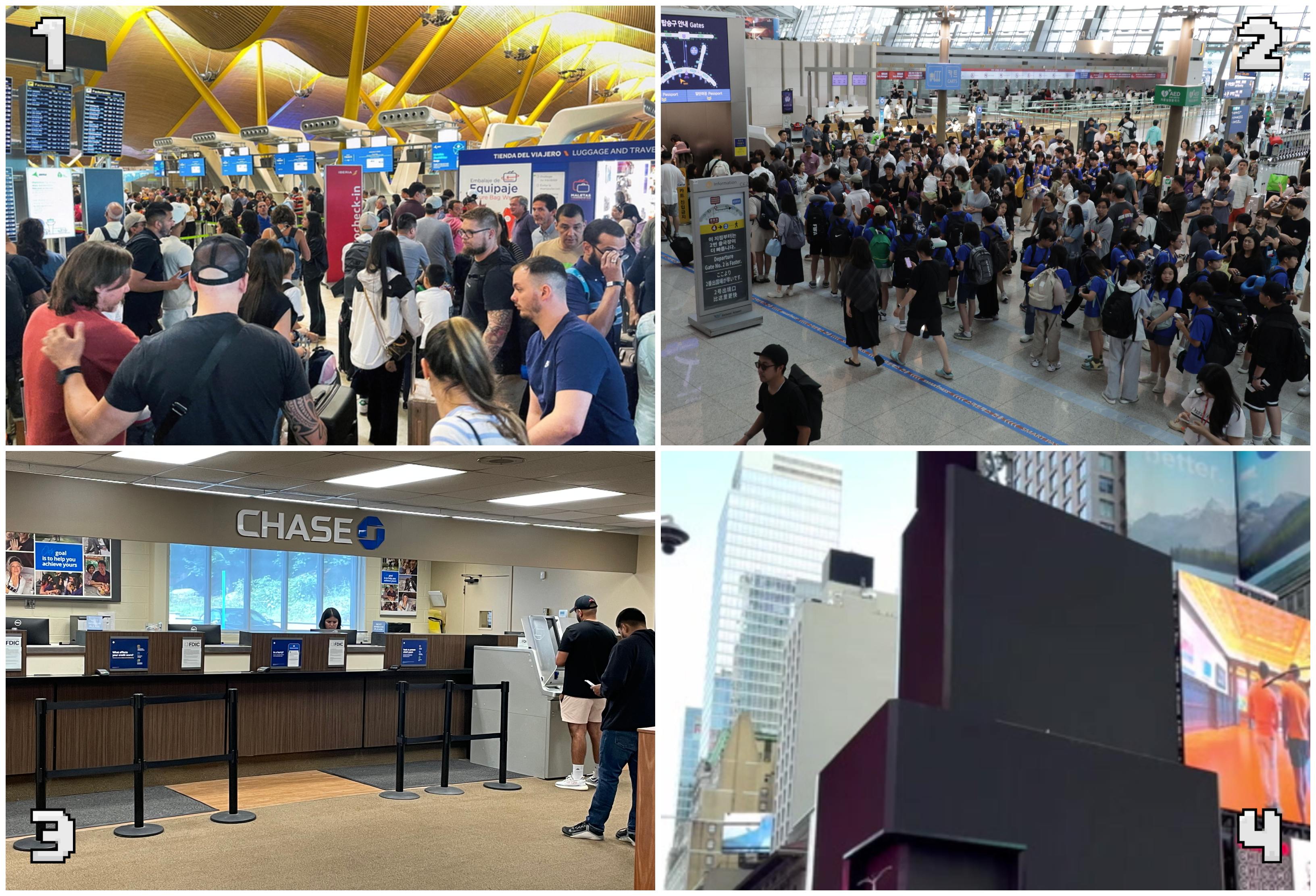 (1) 스페인 마드리드 국제공항 (2) 인천국제공항 (3) 뉴욕 체이스은행 (4) 전광판이 꺼진 타임스퀘어 (출처=매일경제 인디펜던스 로이터)