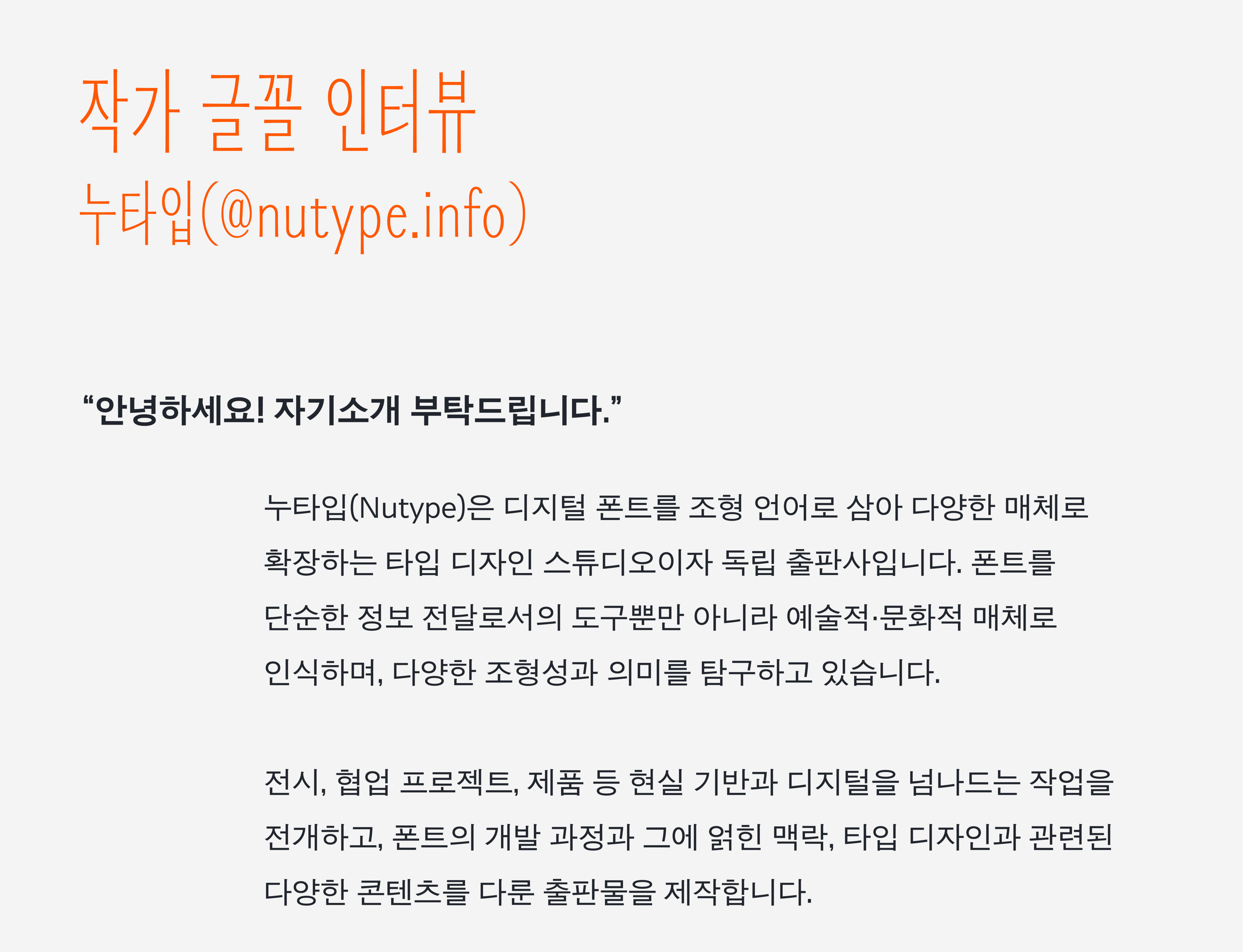 10월의 작가 만나기 - 누타입(Nutype) |