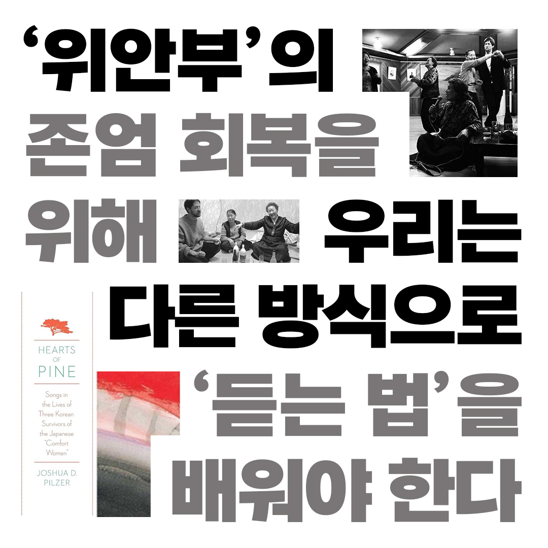 ‘위안부’ 피해 생존자들의 노래를 듣는다는 것은 단순히 음악을 감상하는 일이 아니라, 그들이 살아남기 위해 실천해온 생존의 방식들, 자기표현과 자아 재구성의 행위들, 기억하고 잊으려는 몸짓들, 그리고 소속을 찾아 싸워온 여정을 듣는 일이다. 우리는 그들의 노래 속에서 통제할 수 없던 트라우마를 삶 속으로 끌어들여 다스려온 방법을 듣고, 훗날 정치적 발언으로 발전하게 될 목소리를 단련해온 장(場)을 듣는다. 이 노래들 속에서 우리가 진정으로 귀 기울여 듣는다면 ‘위안부’ 피해 생존자들은 단지 피해자가 아니라 생존의 지혜를 일구어 온 학자이자 교사로서 존재한다는 것을 알게 된다.