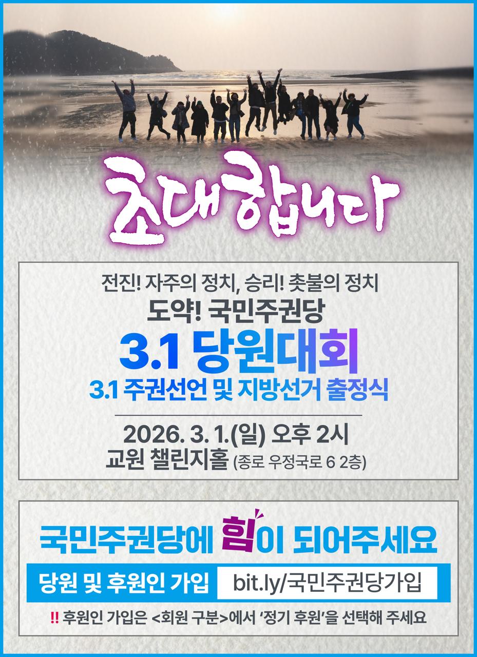 “국민주권 실현의 길에서 함께하는 모든 분들에게 감사와 연대의 정을 담아, 국민주권당의 '3.1 당원대회'에 정중하게 초청 드립니다.”