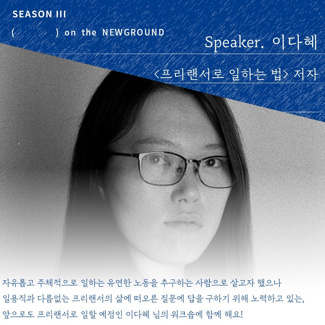 10월 13일(수)까지 신청할 수 있어요! 프리랜서로 일하는 법: 내 일의 가치를 담은 견적서&단가표 작성법 어딘가에 고정으로 소속되지 않은 프리랜서가 되면, 내 일의 가치에 관한 고민이 시작됩니다. 회사에서는 정해진 연봉과 근무시간, 요구되는 업무가 있지만 프리랜서는 그 모든 것을 스스로 정하고 만들어가야 하는 사람이니까요. 이 일에 합당한 작업비는 얼마인지, 이 일은 해야 할지 말아야 할지, 이러한 고민들을 하다 보면 일을 하기도 전에 소진되어 버리는 건 아닐까, 하는 생각도 듭니다. '( ) on the NEWGROUND'는 내가 겪는 문제를 조금 먼저 경험하고, 자신만의 방식으로 풀어나가는 게스트를 초청하는 프로그램입니다. 이번에는 프리랜서로 오랫동안 일하며 최근 <프리랜서로 일하는 법>이라는 책을 펴낸 이다혜 작가와 함께합니다. 드러나지 않는 나의 노동을 정확히 측정하고, 내 일의 가치를 반영하여 합리적인 견적서와 단가표를 작성하는 방법을 알아봅니다. (프로그램 종료 후 직접 각자의 단가표를 작성해보실 수 있도록 PDF 파일로 워크시트를 제공합니다.)
